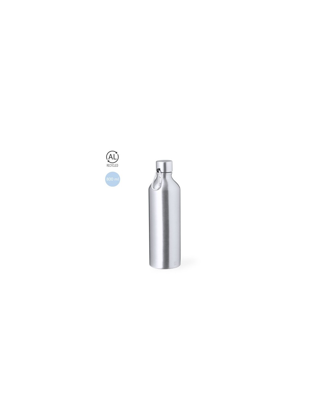 Bidón de Aluminio Reciclado de 800 ml de capacidad. De acabado mate, con tapón a rosca con mosquetón metálico para un fácil transporte y libre de BPA. Disponible en elegantes colores brillo. Presentado en caja individual de diseño kraft. El Aluminio Reciclado es un material con posibilidades de reciclaje casi infinitas, sin perder sus propiedades originales y consumiendo menos energía en este proceso.Certificación GRS (Global Recycled Standard / Estándar de Reciclaje Global), que garantiza el origen reciclado del material usado para fabricar el producto. 800 ml Composition : Aluminio Reciclado.