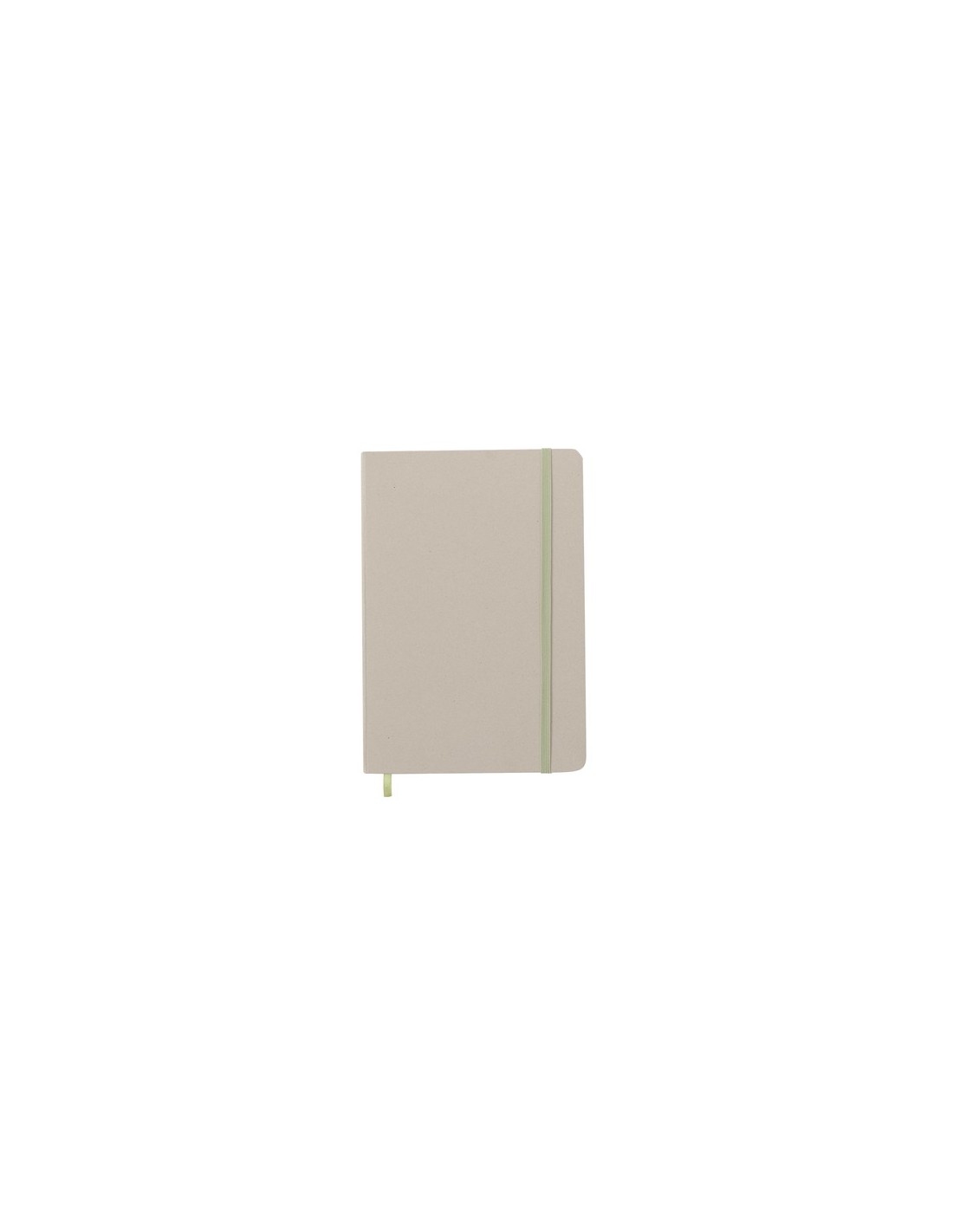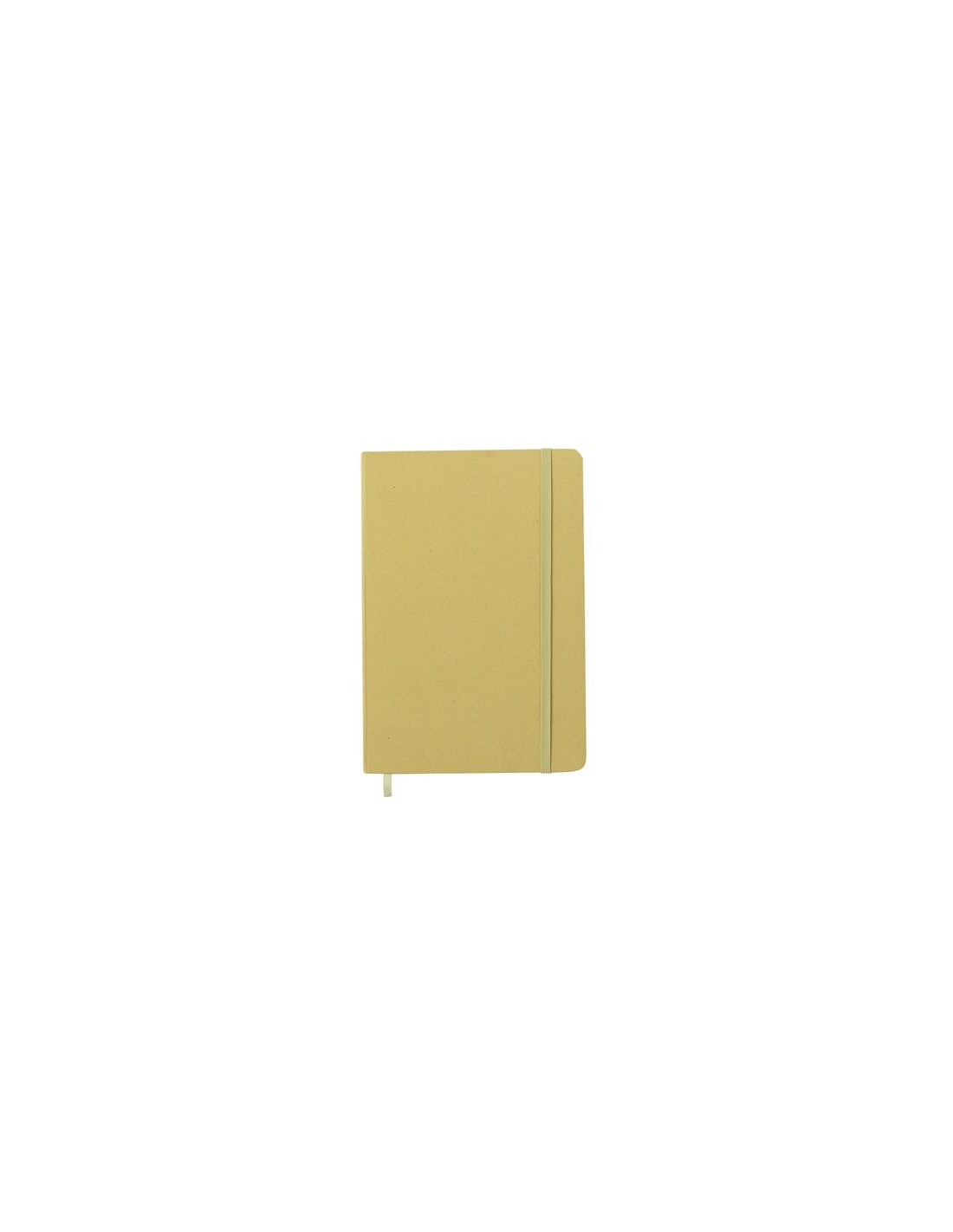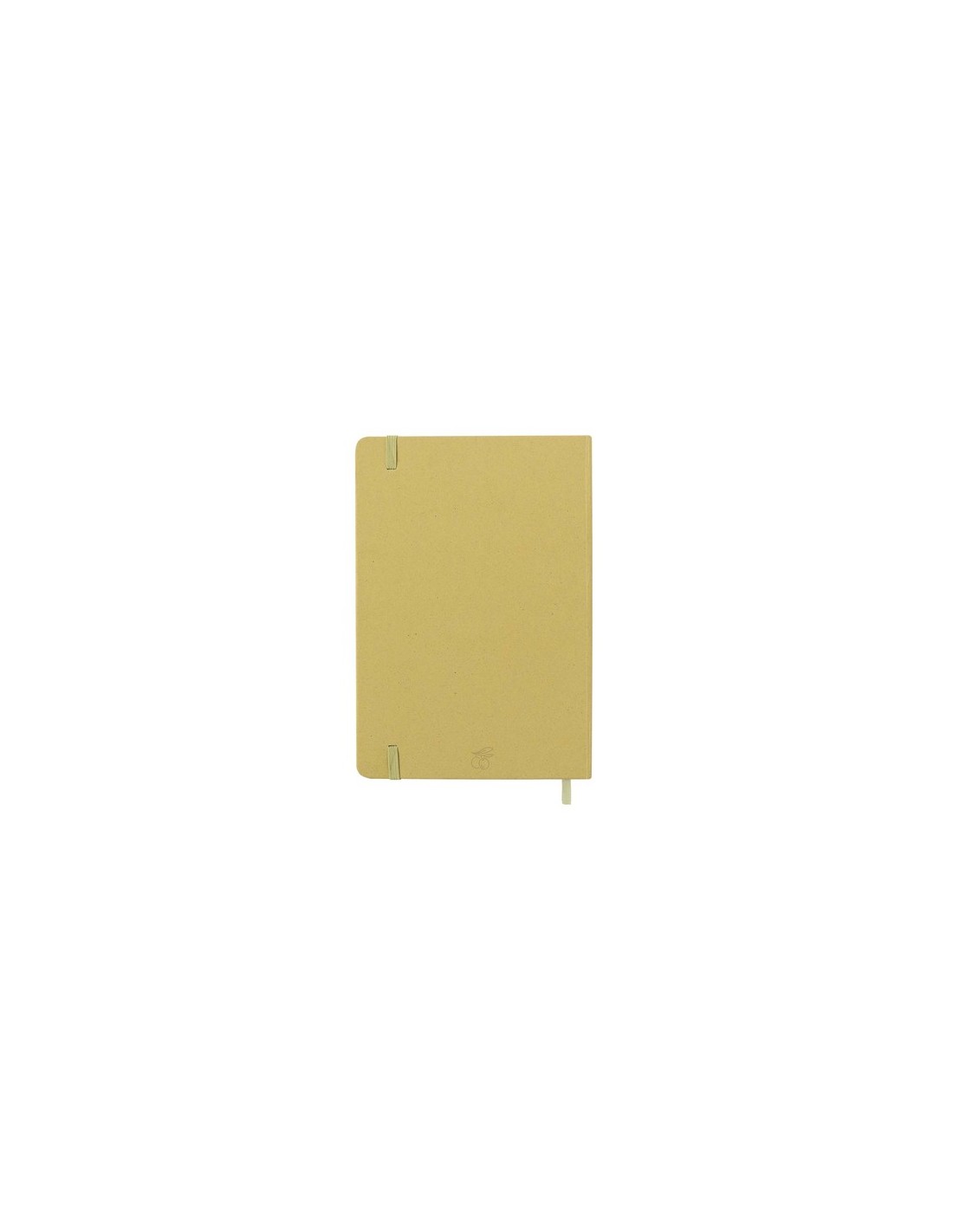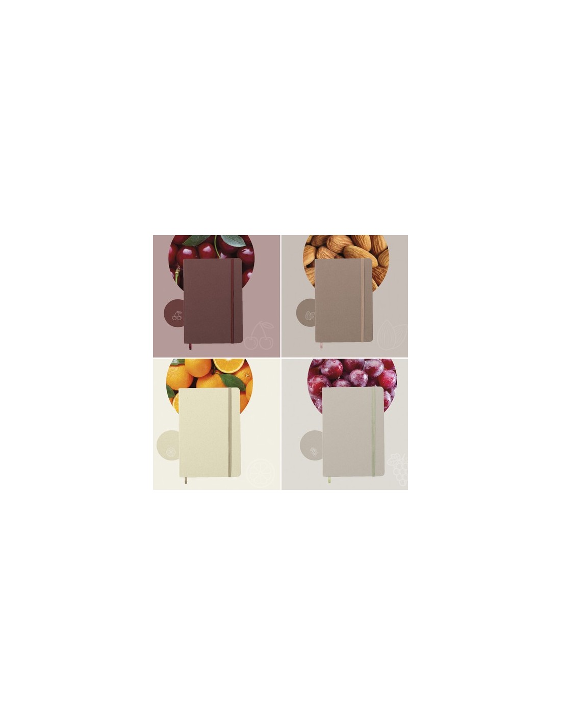 Bloc de notas A5 con tapas duras elaborado a partir de frutas. Interior con 80 hojas de disposición a una raya, con marcapáginas y banda elástica a juego. Disponible en variados colores de acabado kraft. Incluye logotipo Papel de Fruta en contraportada. Presentado en una bolsa individual reciclada.Mediante la mezcla de residuos y desechos procedentes de la industria agroalimentaria, mezclados con otros materiales reciclados, se obtiene un papel 100% sostenible: el papel de frutas. Fomentando su uso se contribuye a la reutilización de materiales, y a un mayor compromiso medioambiental. Portada Rígida. 80 Hojas Composition : Papel de Fruta/ Cartón Reciclado.