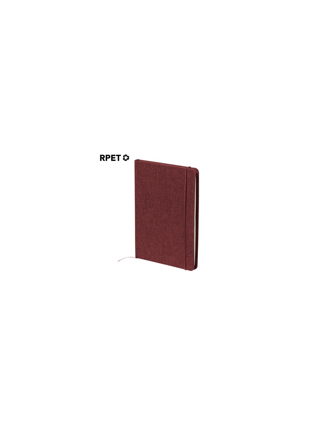 Bloc de notas con tapas rígidas fabricadas en RPET. Interior con 80 hojas lisas. Incluye marcapáginas, con logotipo RPET en la contraportada. Disponible en elegantes colores y presentado individualmente en bolsa reciclada. El material RPET se elabora a partir de plástico reciclado, para así fomentar la reutilización de residuos plásticos y ayudar a la sostenibilidad del planeta. Portada Rígida. 80 Hojas Composition : Poliéster 300D RPET.