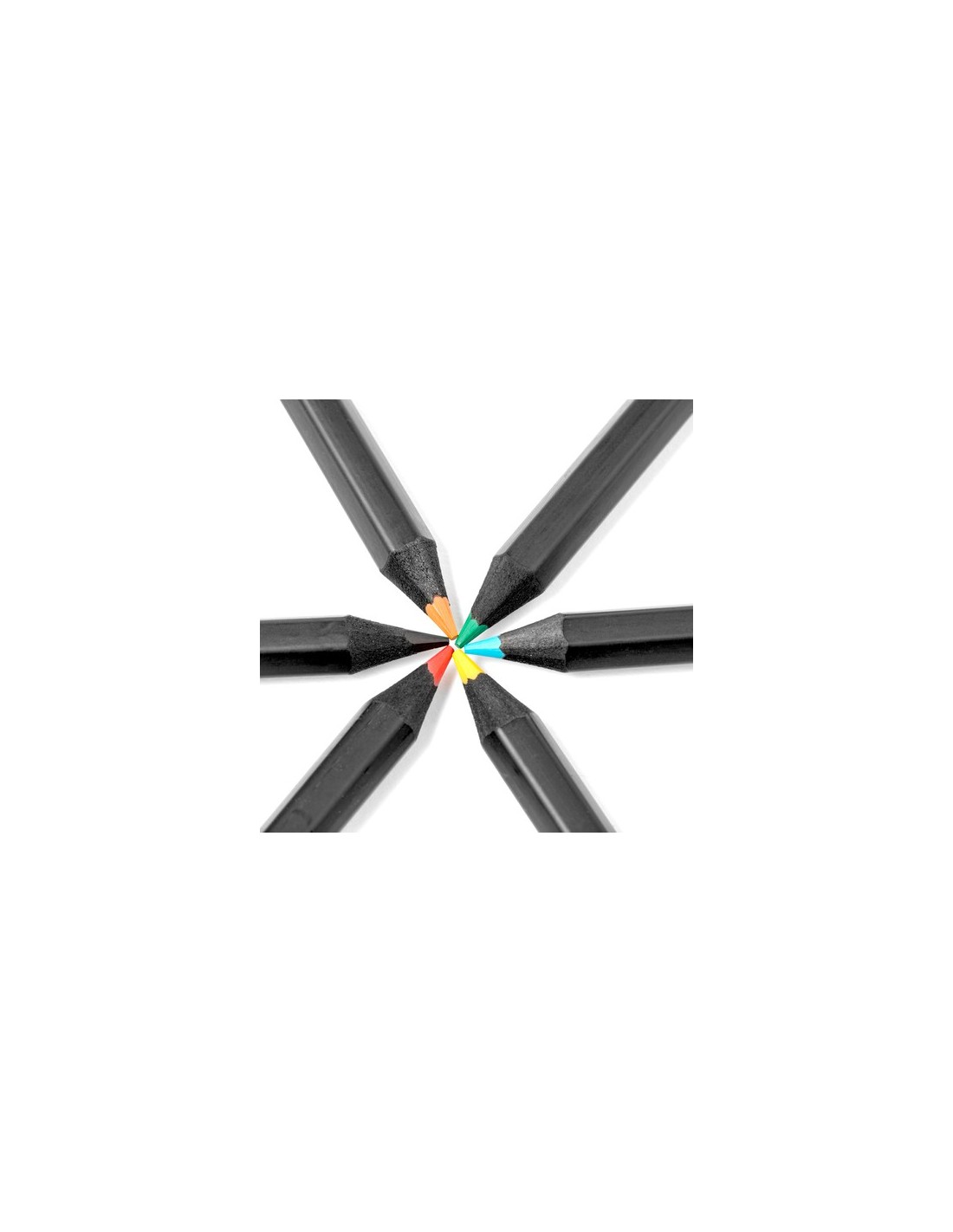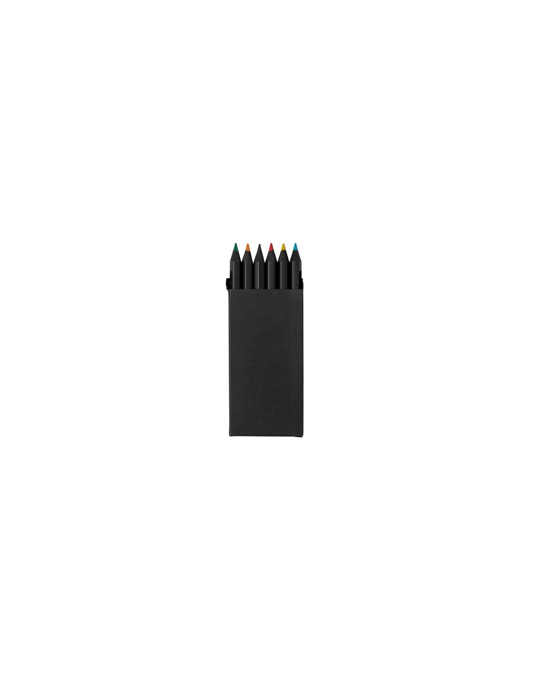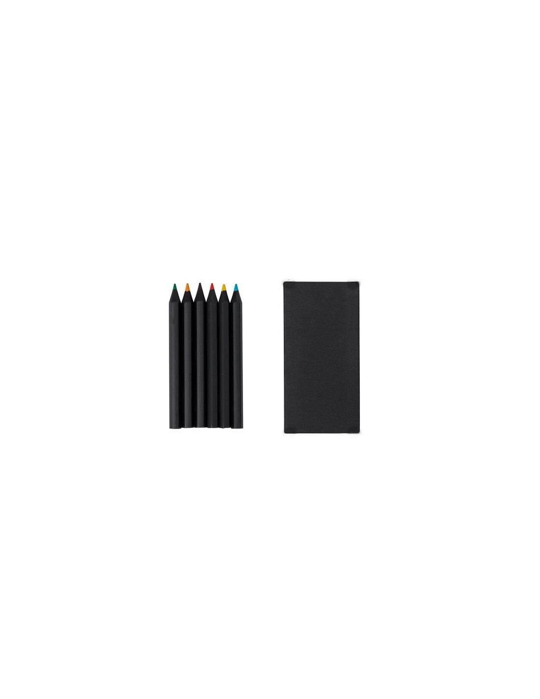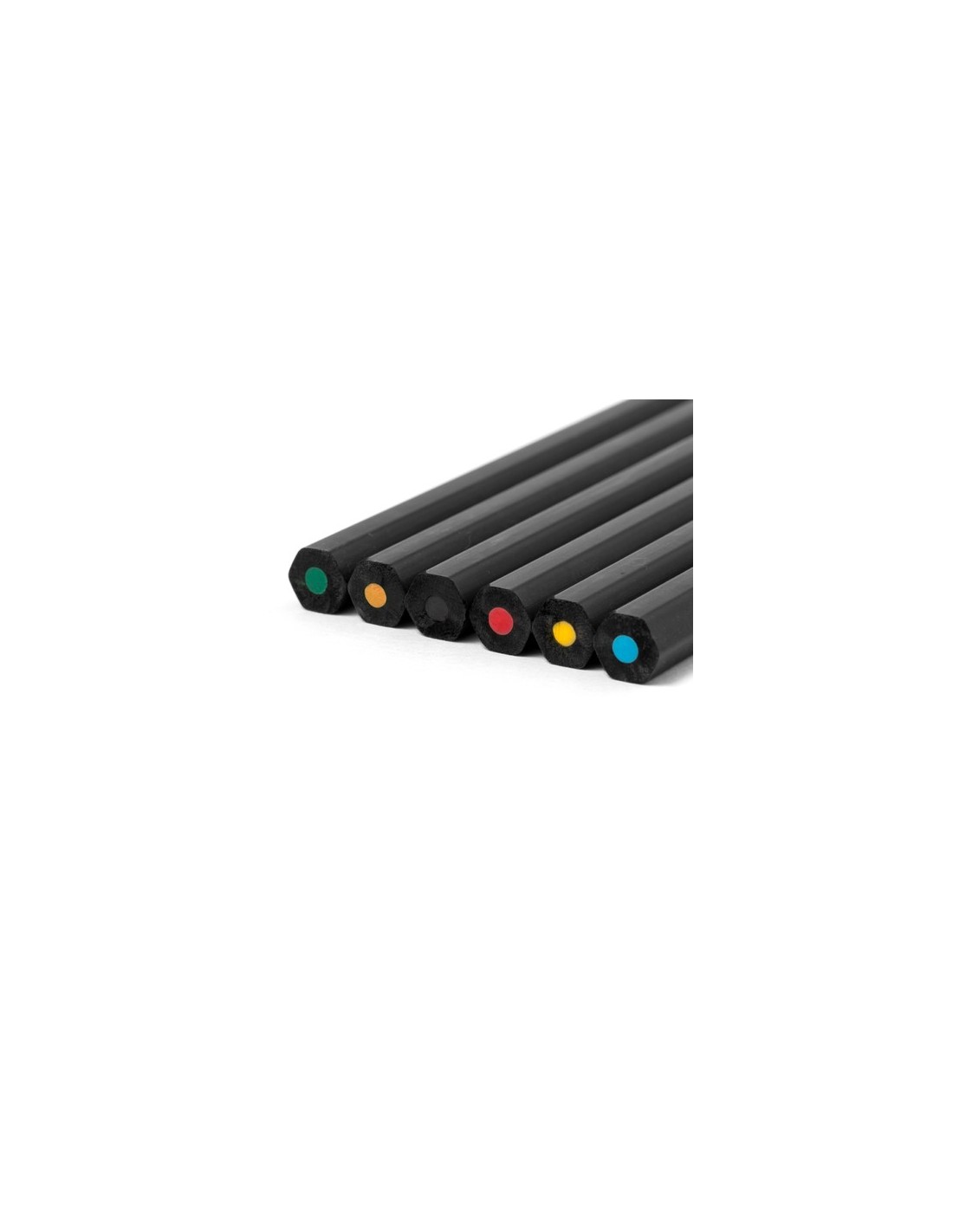 Set de 6 lápices de madera acabada en color negro, con cuerpo hexagonal y minas en varios colores. Presentados en estuche negro de cartón reciclado negro con cierre de solapa. 6 Lápices Composition : Cartón Reciclado.