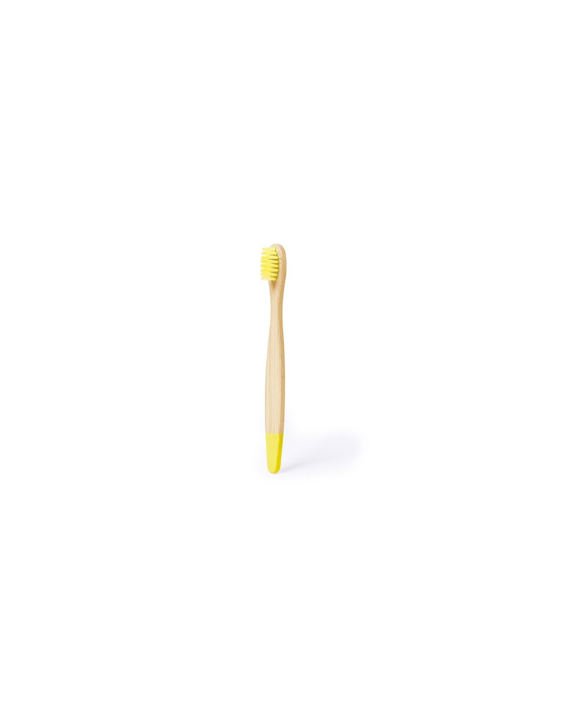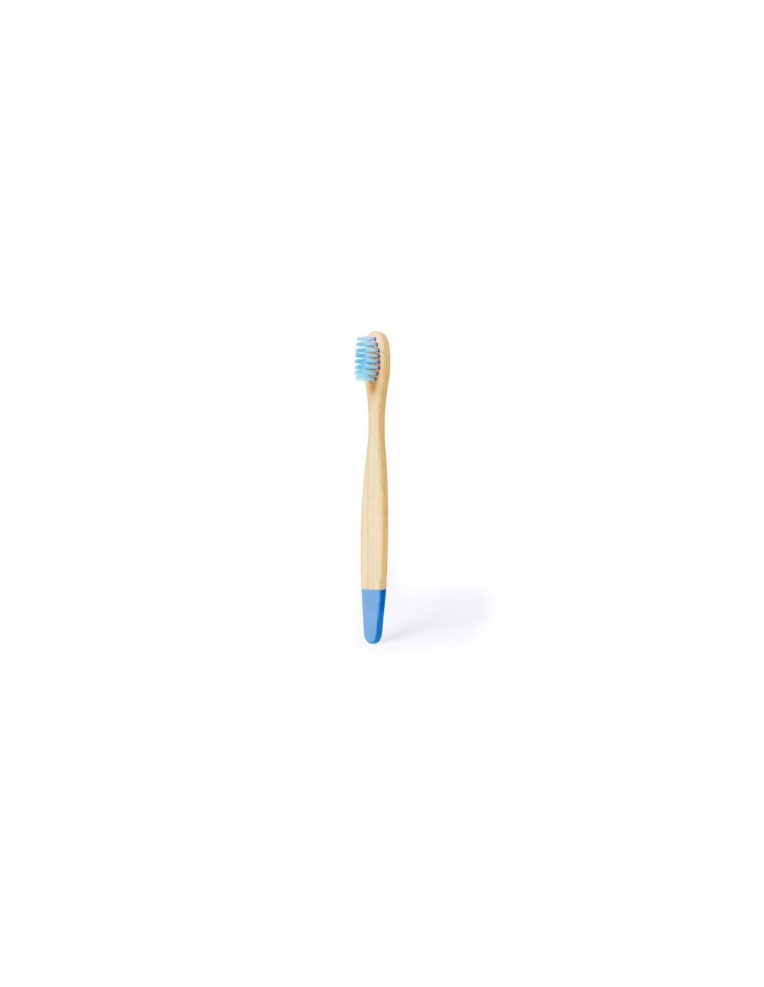 Cepillo de dientes fabricado en bambú. Para los más pequeños de casa, con cerdas y puntas en divertidos colores. Presentado individualmente en caja kraft. Materiales como el bambú fomentan la utilización de materias primas naturales, reduciendo las emisiones contaminantes. Proviene de una planta de gran resistencia y versatilidad, con crecimiento y regeneración rápidos, siendo una excelente alternativa al uso de madera tradicional. Composition : Bambú.