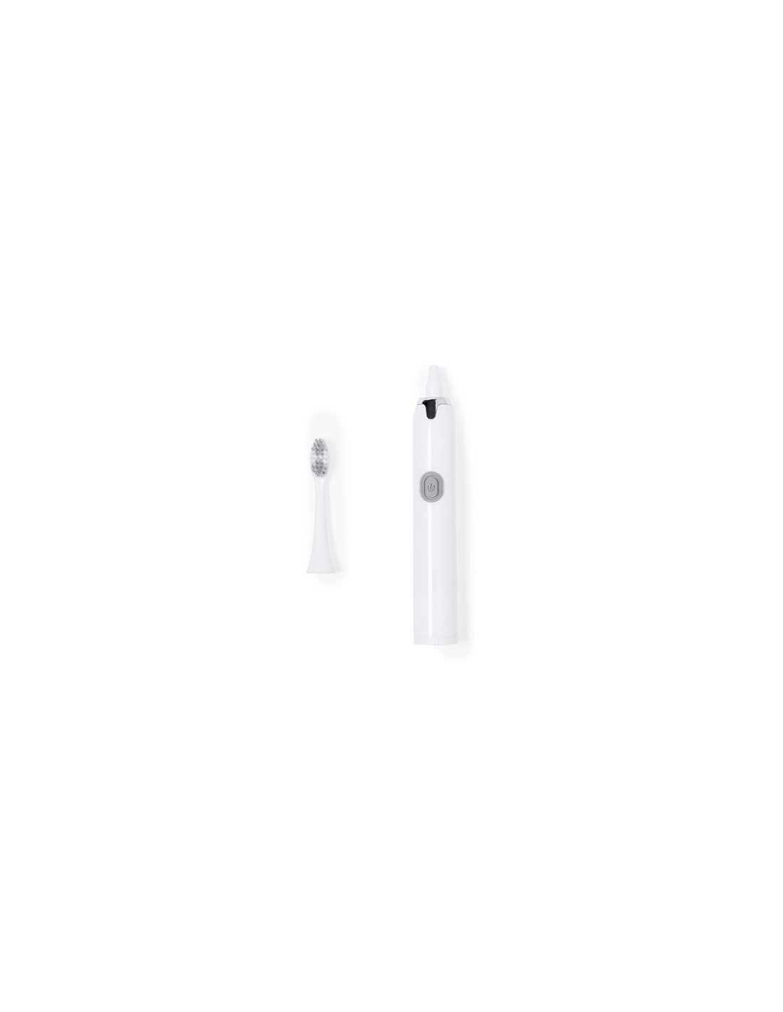 Práctico cepillo de dientes portátil eléctrico. Eficiente limpieza gracias a su función de vibración y a sus agradables cerdas. Funciona con 1 pilas AA (no incluida) introducidas por la base. En color blanco y plateado, presentado en una caja de diseño kraft. 1 Pila AA No Incluida