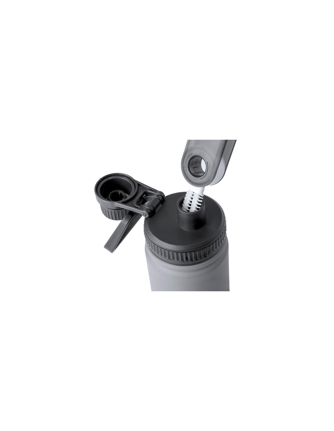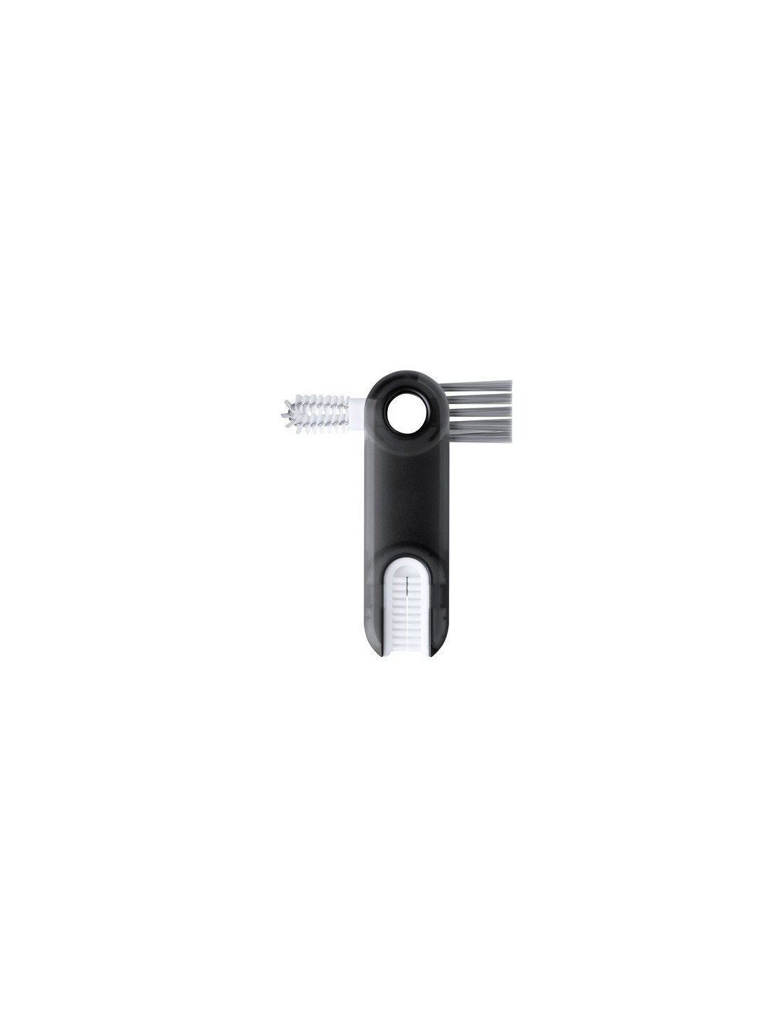 Práctico cepillo limpiador todo en uno, especialmente diseñado para bidones, termos, tazas, vasos y artículos similares. Incluye 3 cepillos con diferentes tipos de cerdas, ideales para la correcta limpieza de las partes de difícil acceso de los recipientes. Fabricado en resistente material ABS, con zona lisa para marcaje y presentado en caja individual de diseño kraft. 3 Funciones