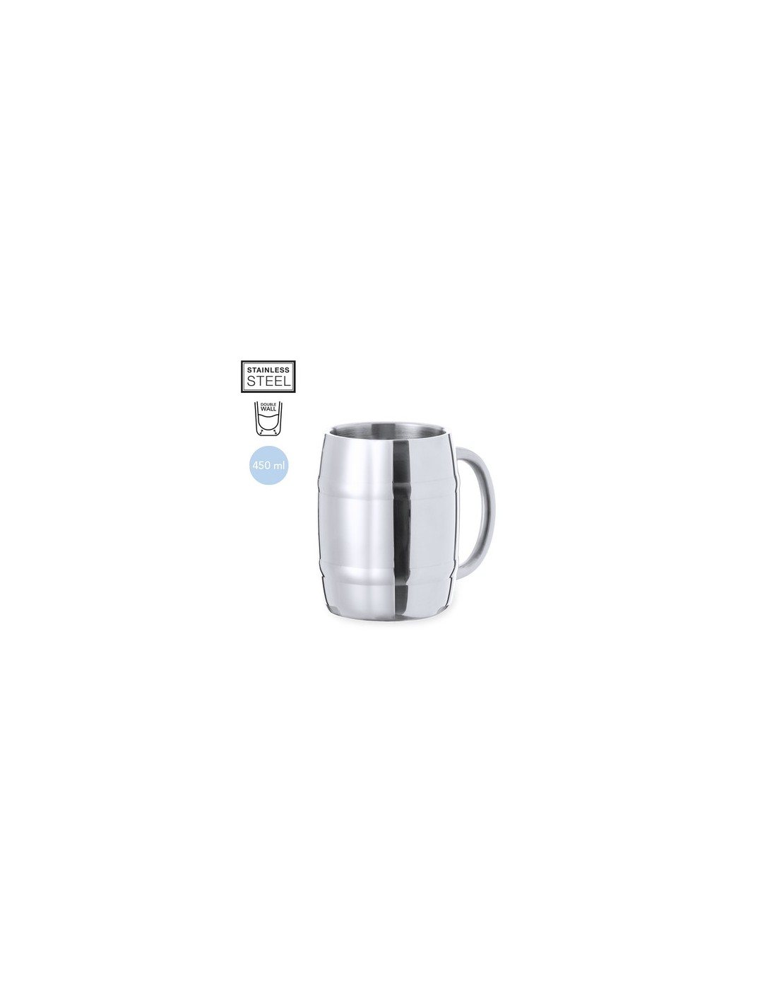 Jarra de acero inox en elegante acabado metálico para los más cerveceros. De 450 ml de capacidad, con cómoda asa y fantástico diseño en forma de barril. Presentada en una caja de diseño kraft. 450 ml Composition : Acero Inox.