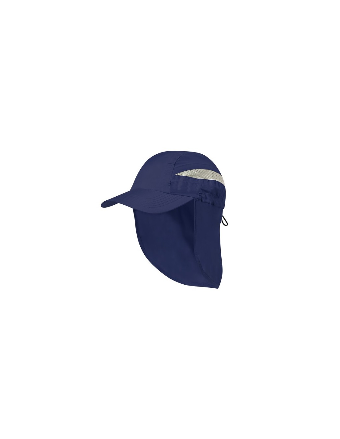Gorra deportiva en suave microfibra de diseño bicolor en vivos colores. Cierre elástico con accesorio de ajuste y paneles de redecilla para el sudor. Además, con solapa para proteger del sol el cuello. Cierre Elástico Composition : Microfibra.