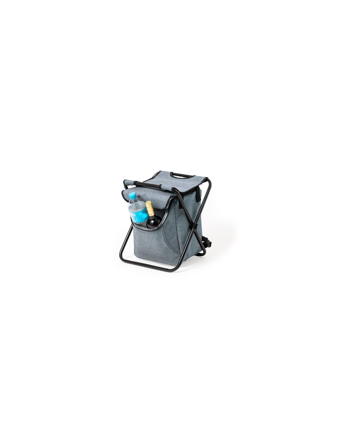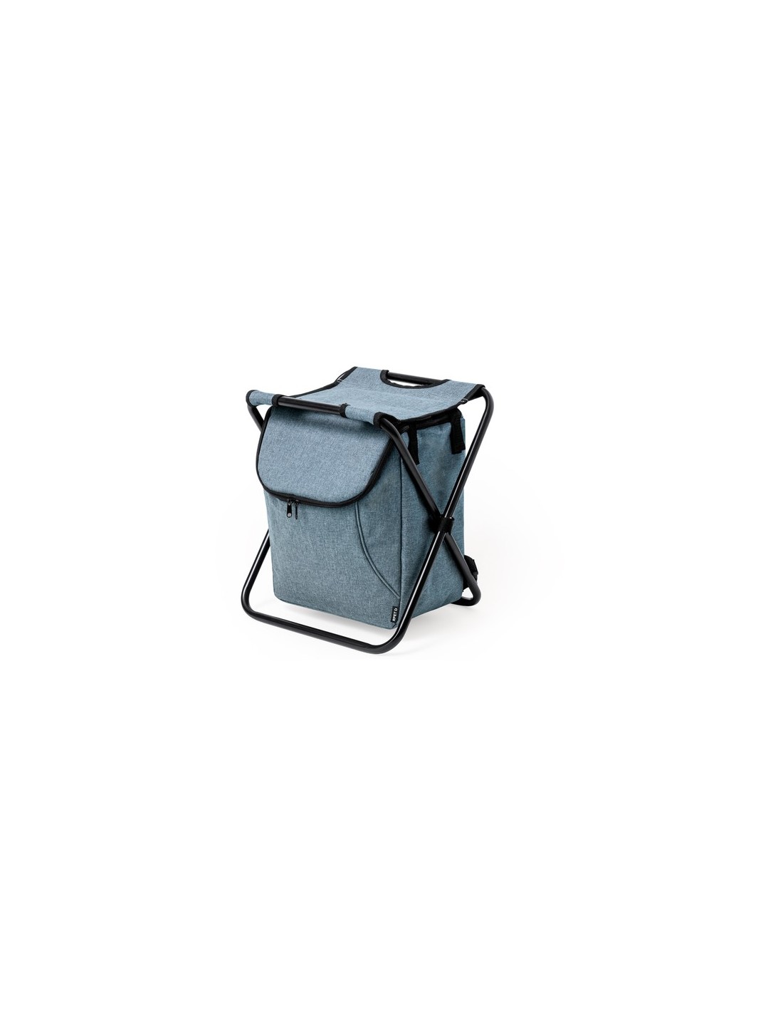 Silla plegable con cuerpo de aluminio y nevera integrada en asiento fabricada en RPET 600D, con costuras reforzadas, cierre de cremallera y prácticas asas de hombros para transporte, pudiendo guardarlas en el bolsillo específico. Con tira de refuerzo de nylon en las patas e interior isotermo PEVA. Presentada en bolsa individual.El material RPET se elabora a partir de plástico reciclado, para así fomentar la reutilización de residuos plásticos y ayudar a la sostenibilidad del planeta. Composition : Poliéster 600D RPET/ PEVA.