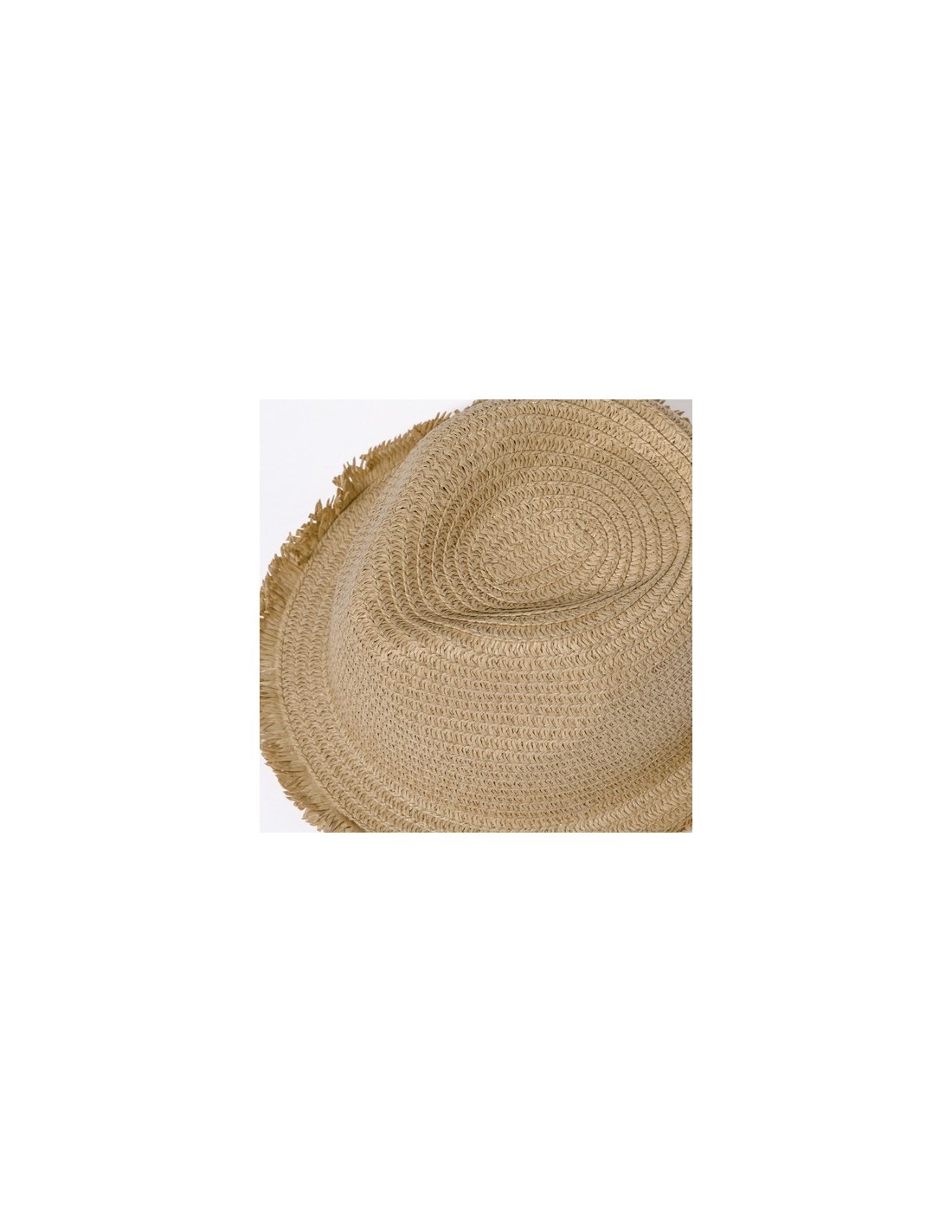 Elegante sombrero confeccionado en paja de papel. Disponible en colores naturales con bordes terminado en flecos. Incluye cinta confortable en el interior, además de otra cinta ajustable. Composition : Paja de Papel.