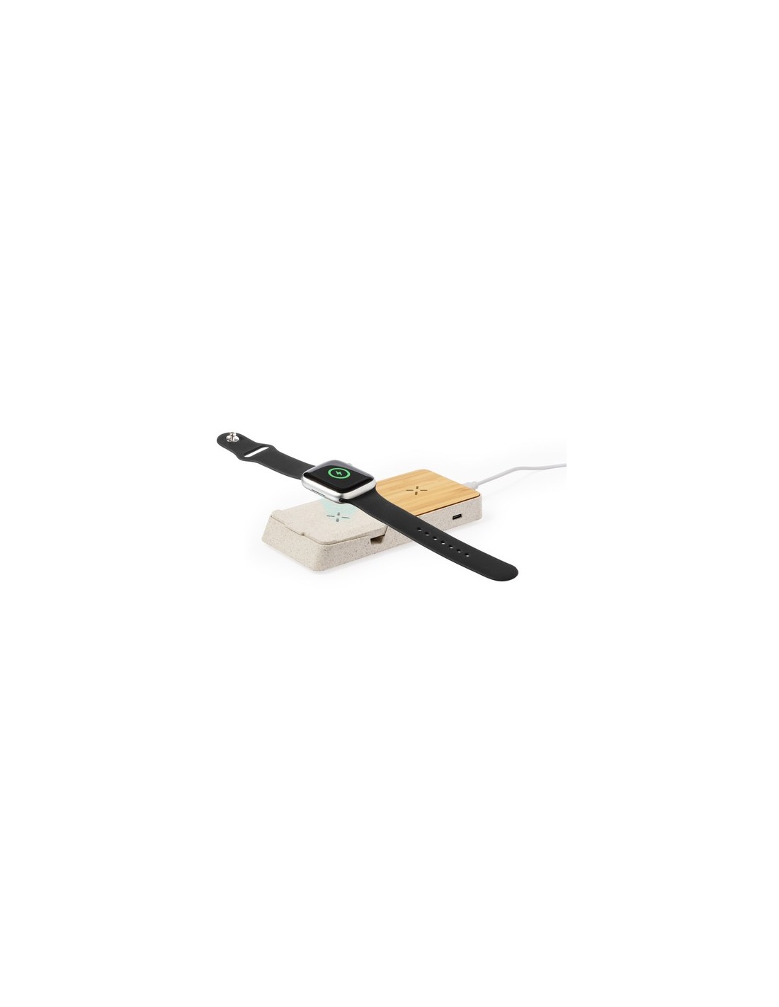 Completo cargador inalámbrico 15W con soporte fabricado en combinación de caña de trigo y bambú. Diseñado para la carga simultánea del smartphone o smartwatch, y auriculares, tanto de forma inalámbrica como a través de su puerto Tipo C: una estación de carga todo en uno, versátil y con soporte para smartphone o tablet. Presentada en atractiva caja individual de diseño kraft y disponible manual de instrucciones en español e inglés.La caña de trigo fomenta la utilización de materias primas naturales, reduciendo así las emisiones contaminantes.Materiales como el bambú fomentan la utilización de materias primas naturales, reduciendo las emisiones contaminantes. Proviene de una planta de gran resistencia y versatilidad, con crecimiento y regeneración rápidos, siendo una excelente alternativa al uso de madera tradicional.Fabricado conforme a los estándares RoHS y en cumplimiento con los siguientes requisitos de seguridad:Sistema de protección contra sobrecalentamiento.Sistema de protección contra sobrecarga.Sistema de bloqueo para evitar cortocircuitos. Inalámbrico 15W. Salida Tipo C Composition : Caña de Trigo/ ABS/ Bambú.