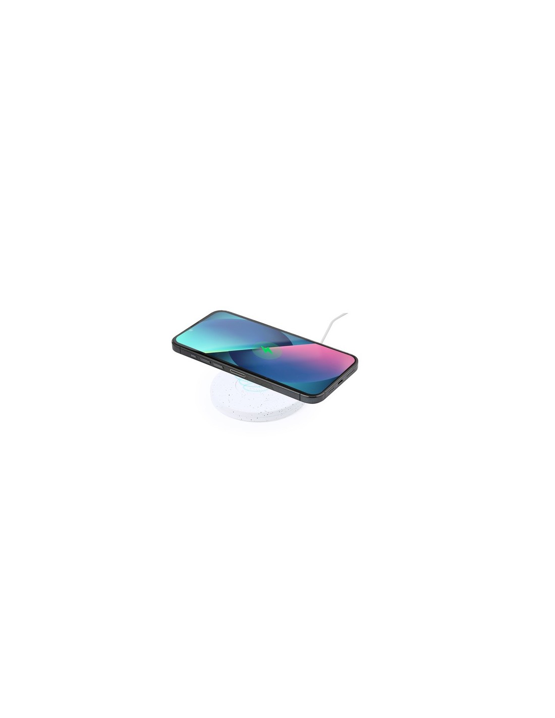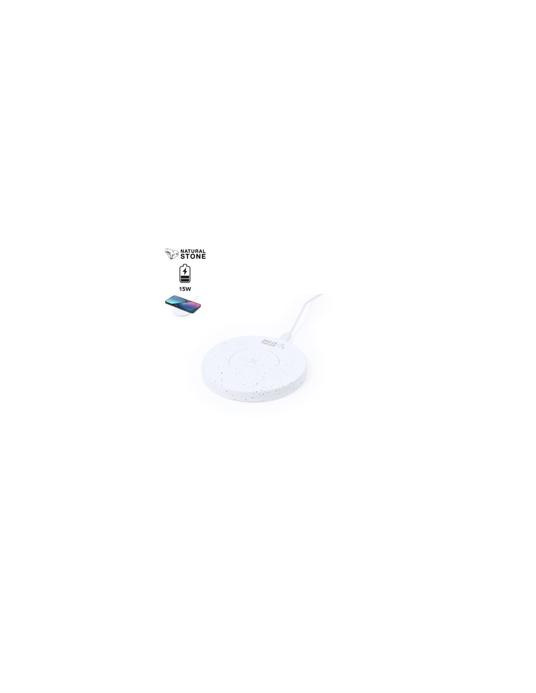 Cargador inalámbrico circular 15W, fabricado a partir de extractos de piedra natural en combinación con resistente ABS. Base antideslizante e indicador LED de estado de carga. Cable Tipo C incluido y compatible con smartphones con tecnología de carga inalámbrica. Presentado en atractiva caja de diseño kraft.Fabricado con extractos de piedra natural, ayudando a la reducción del uso de plásticos, además de proporcionar un acabado suave y resistente.Fabricado conforme a los estándares RoHS y en cumplimiento con los siguientes requisitos de seguridad:Sistema de protección contra sobrecalentamiento.Sistema de protección contra sobrecarga.Sistema de bloqueo para evitar cortocircuitos. Inalámbrico 15W Composition : Extractos de Piedra Natural/ ABS.