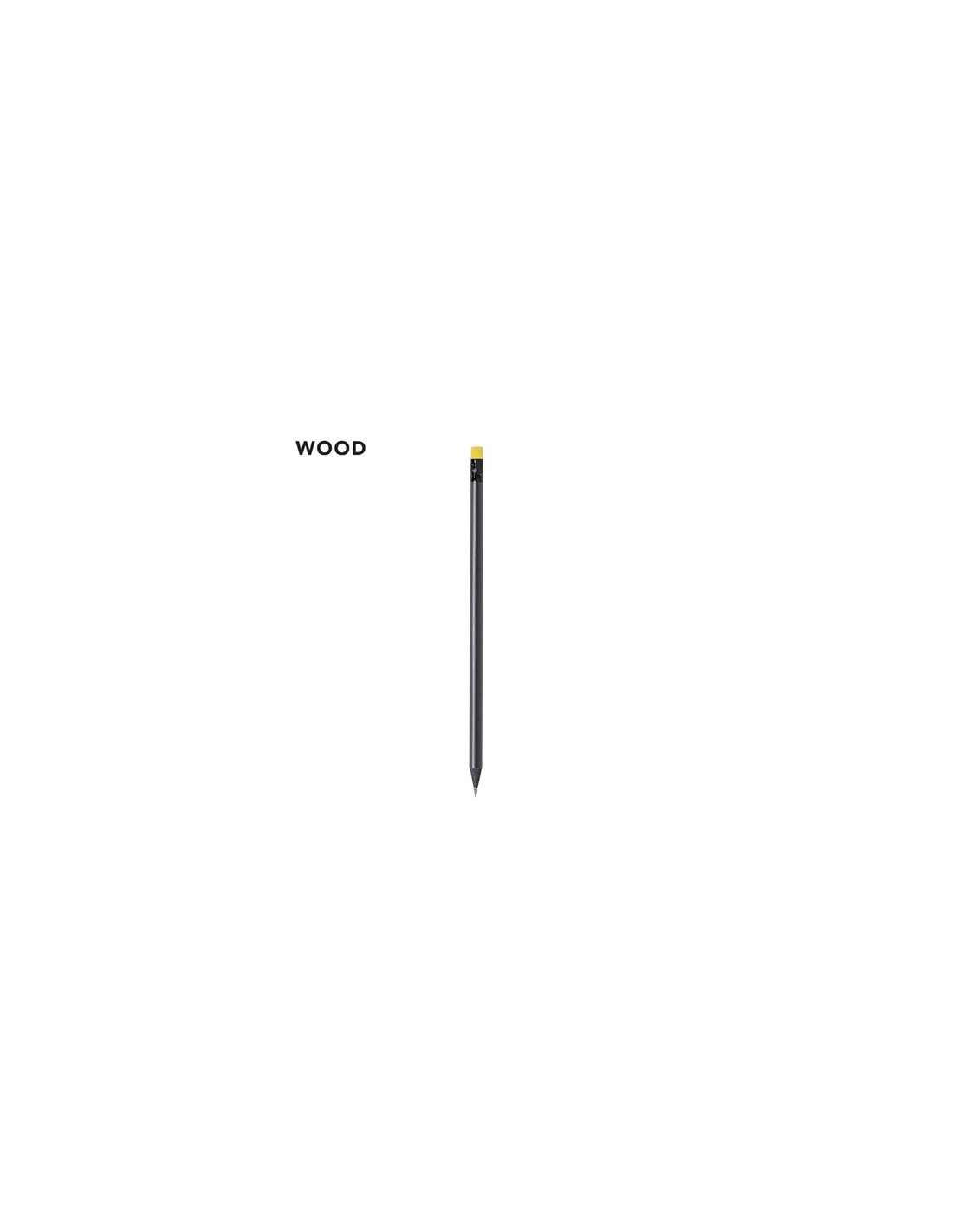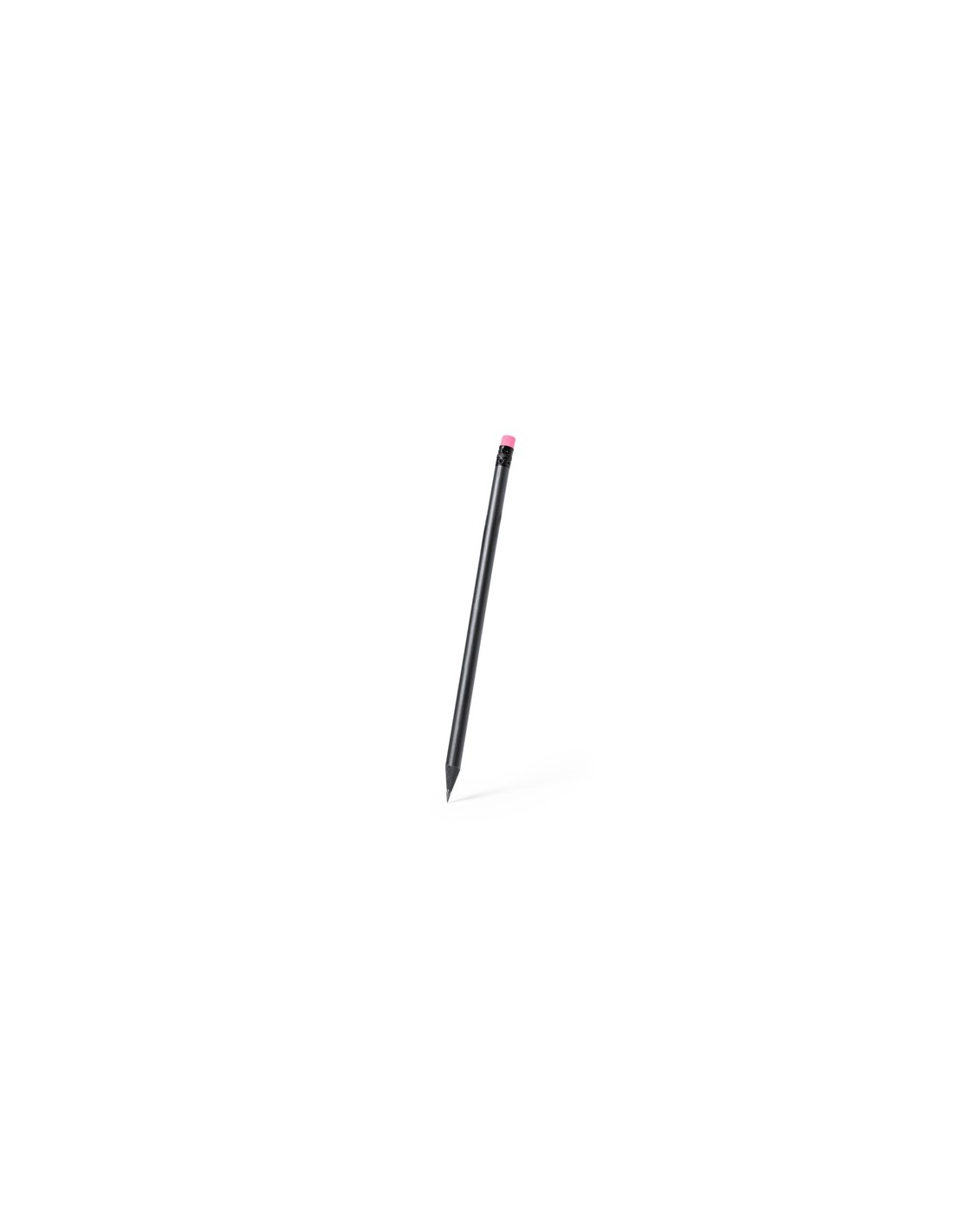 Elegante lápiz de color negro fabricado en madera natural, con práctica goma y disponible en diversos colores. Con mina negra y punta afilada. Composition : Madera.