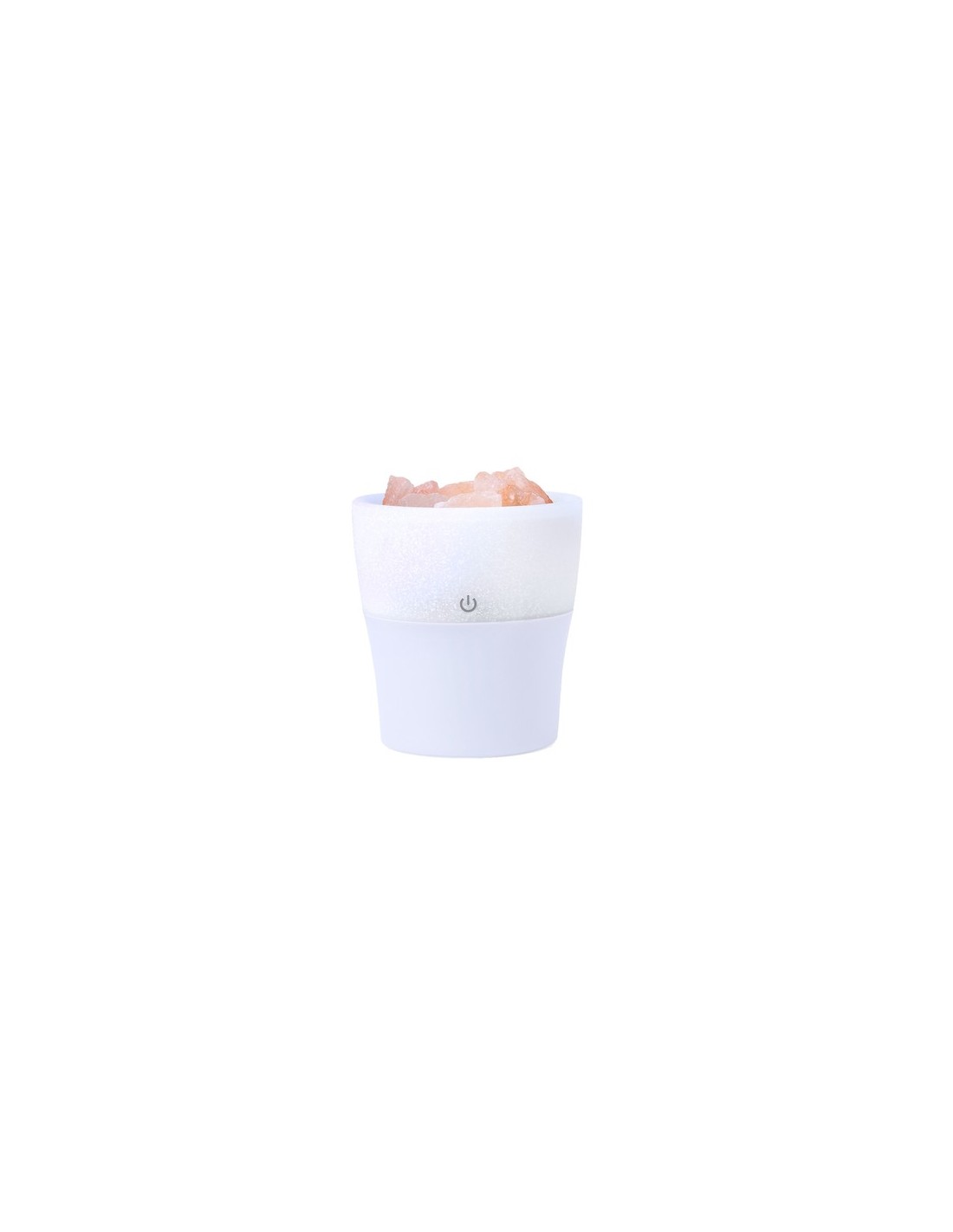 Elegante y decorativo humidificador con difusor aromático integrado con sal del Himalaya. Con luz led en iluminación multicolor y vaporización continua. Depósito de 150 ml, para uso en estancias de hasta 25m2, y cable de corriente USB. Incluye 10 ml de aroma a lavanda. Presentado en caja de diseño kraft. Piedras Rosas de Sal del Himalaya. Aceite 10 ml. Aroma Lavanda. Luces Led Multicolor. 150 ml. 1 Posición de Vapor. Conexión USB