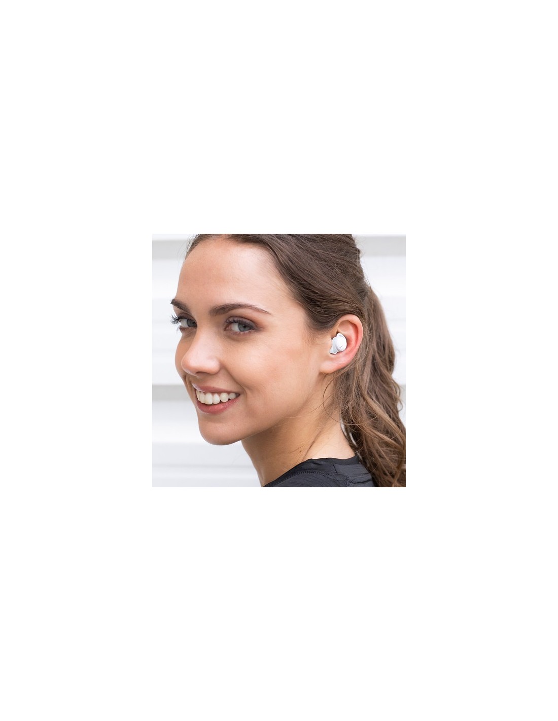 Auriculares intraurales en elegante acabado blanco y conexión Bluetooth 5.0. De diseño ergonómico y compacto, permitiendo apoyar la oreja o cubrirla sin ocasionar molestias. Incluyen botón de control táctil integrado en el auricular, con base de carga a juego. Función manos libres y recargables, con cable Tipo C incluido. Presentados en estuche individual de lujo con tapa de bisagra y con base de carga de 250mAh. Presentados en atractiva caja de diseño kraft, con manual de instrucciones en español e inglés.Fabricados conforme a los estándares RoHS y en cumplimiento con los siguientes requisitos de seguridad:Sistema de protección contra sobrecalentamiento.Sistema de protección contra sobrecarga.Sistema de bloqueo para evitar cortocircuitos. Conexión Bluetooth. Batería 30 mAh/ Base Carga 250 mAh