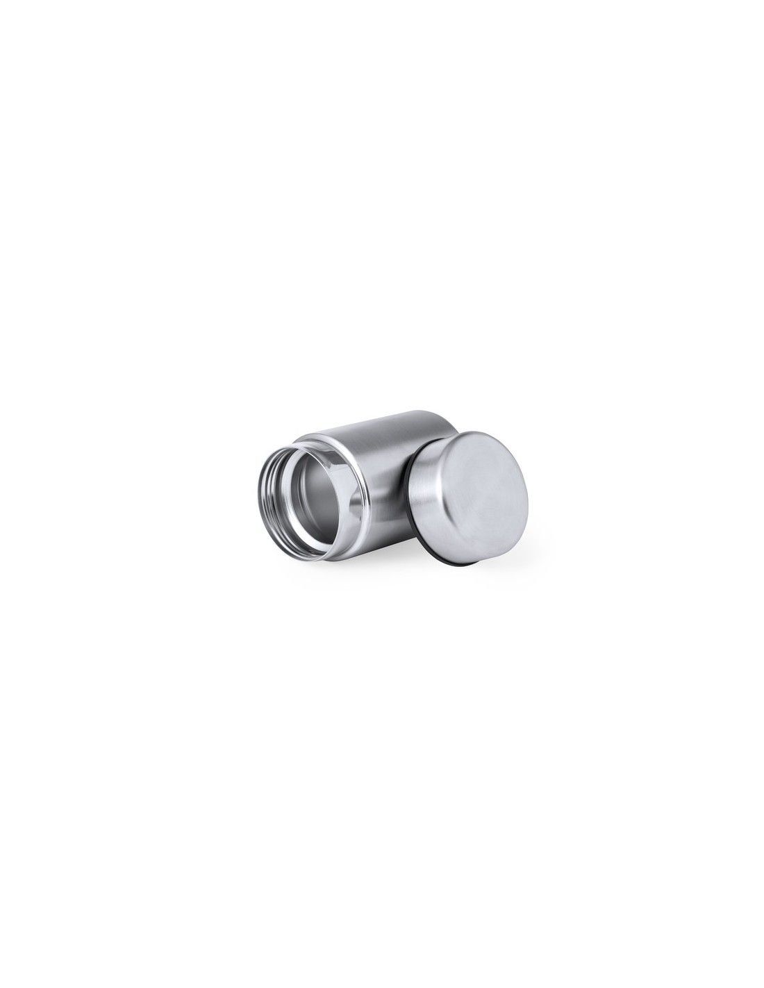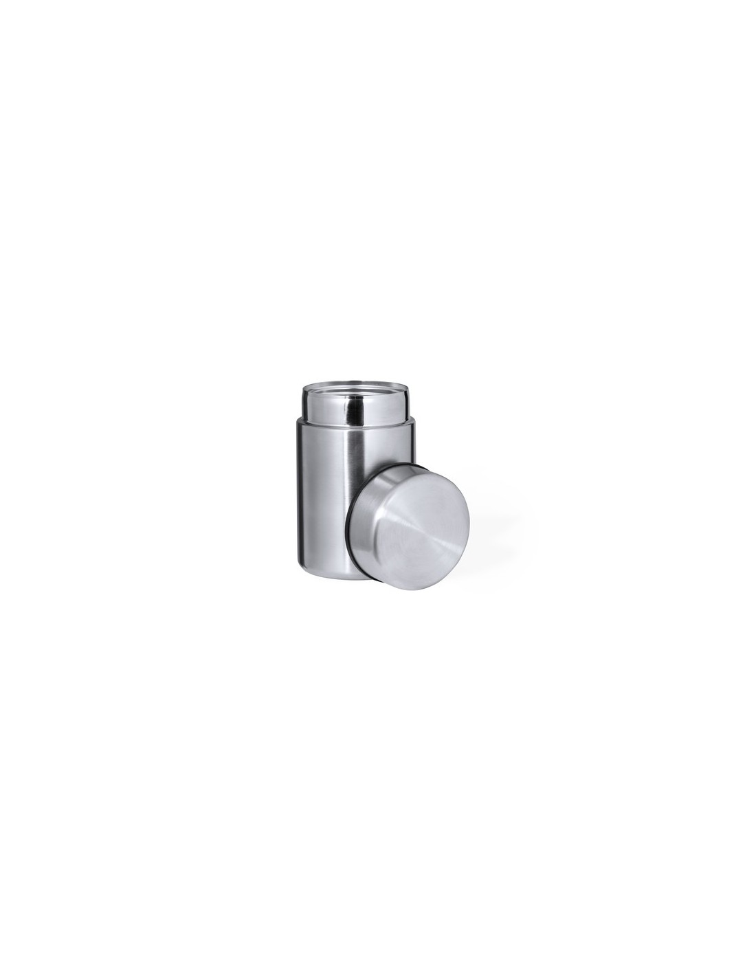 Fiambrera de doble pared, fabricada en acero inox y de 600 ml de capacidad. Cierre de seguridad con tapadera estanca de rosca en acero inox. Disponible en varios colores y presentada en atractiva caja individual de diseño. 600 ml Composition : Acero Inox.