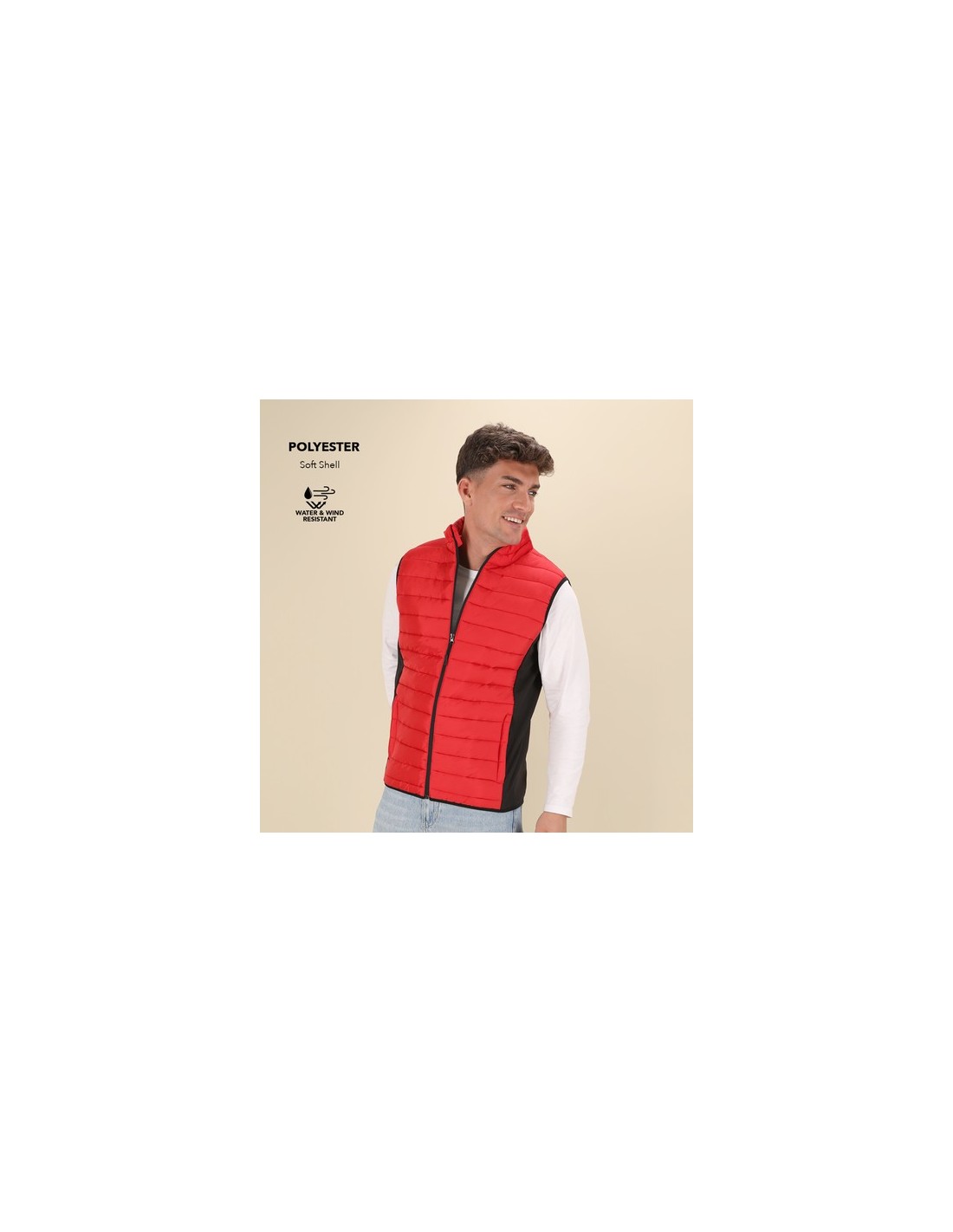 Chaleco resistente al viento y al agua, en cálida combinación de materiales soft shell y poliéster, con interior acolchado. De elegante construcción y en variada gama de colores, con detalles y laterales en negro. Cierre de cremallera y bolsillos laterales de cremallera, con tiradores para fácil apertura. Disponible en tallas S, M, L, XL, XXL. Resistente al Viento y al Agua Composition : Soft Shell/ Poliéster.