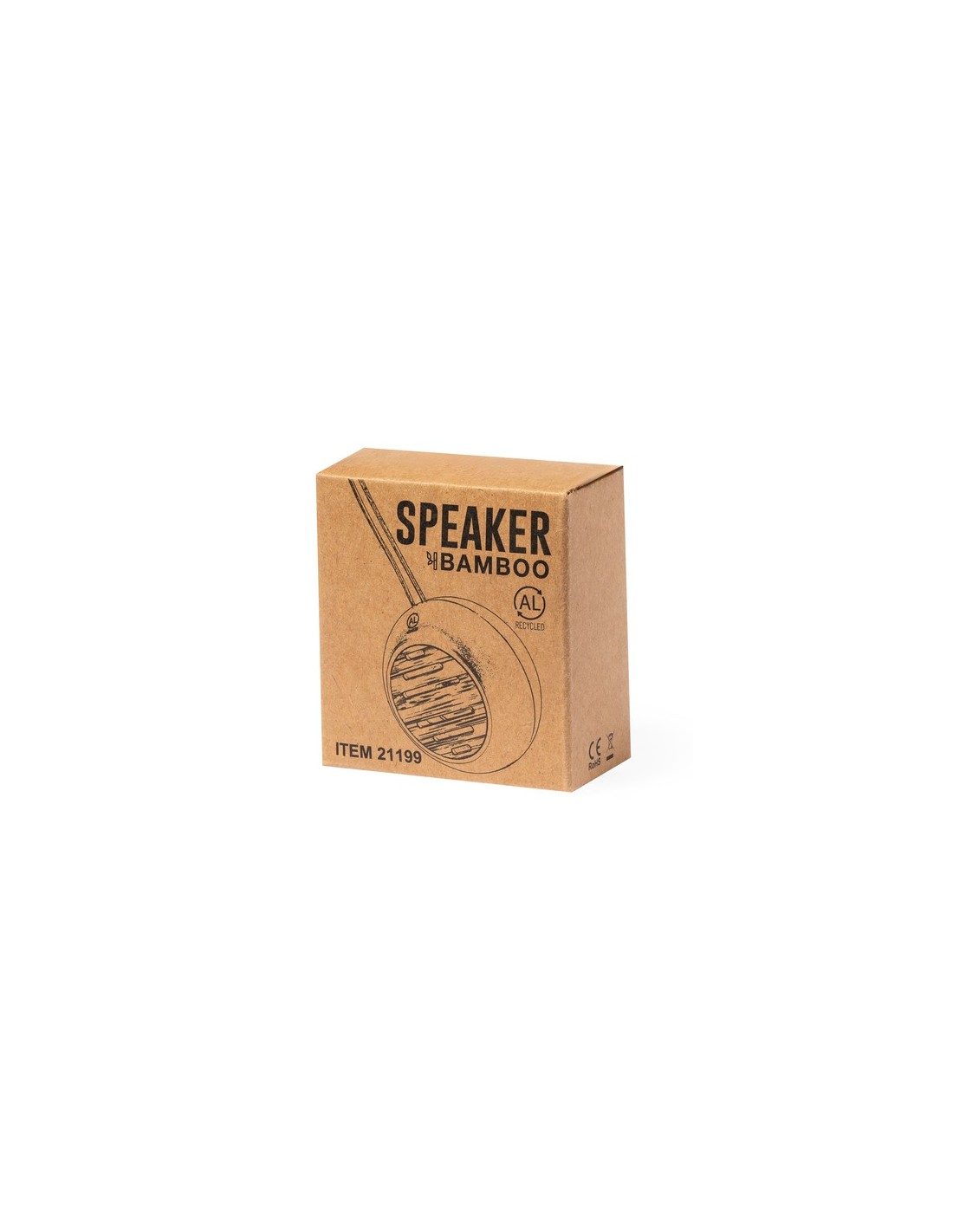 Original altavoz Bluetooth de tamaño compacto y 3W de potencia. Fabricado en materiales eco, combinado un cuerpo en resistente Aluminio Reciclado y una rejilla en bambú. Batería de litio de 300mAh, recargable mediante cable Tipo C (incluido). Con botón ON/OFF y luz LED de estado de carga. Con logotipo Aluminio Reciclado y cordón para un fácil transporte. Presentado en caja individual de diseño kraft, con manual de instrucciones en español e inglés.El Aluminio Reciclado es un material con posibilidades de reciclaje casi infinitas, sin perder sus propiedades originales y consumiendo menos energía en este proceso.Certificación GRS (Global Recycled Standard / Estándar de Reciclaje Global), que garantiza el origen reciclado del material usado para fabricar el producto.Materiales como el bambú fomentan la utilización de materias primas naturales, reduciendo las emisiones contaminantes. Proviene de una planta de gran resistencia y versatilidad, con crecimiento y regeneración rápidos, siendo una excelente alternativa al uso de madera tradicional.Fabricado conforme a los estándares RoHS y en cumplimiento con los siguientes requisitos de seguridad:Sistema de protección contra sobrecalentamiento.Sistema de protección contra sobrecarga.Sistema de bloqueo para evitar cortocircuitos. Conexión Bluetooth. Potencia Sonido 3W. Batería 300 mAh Composition : Aluminio Reciclado/ Bambú.
