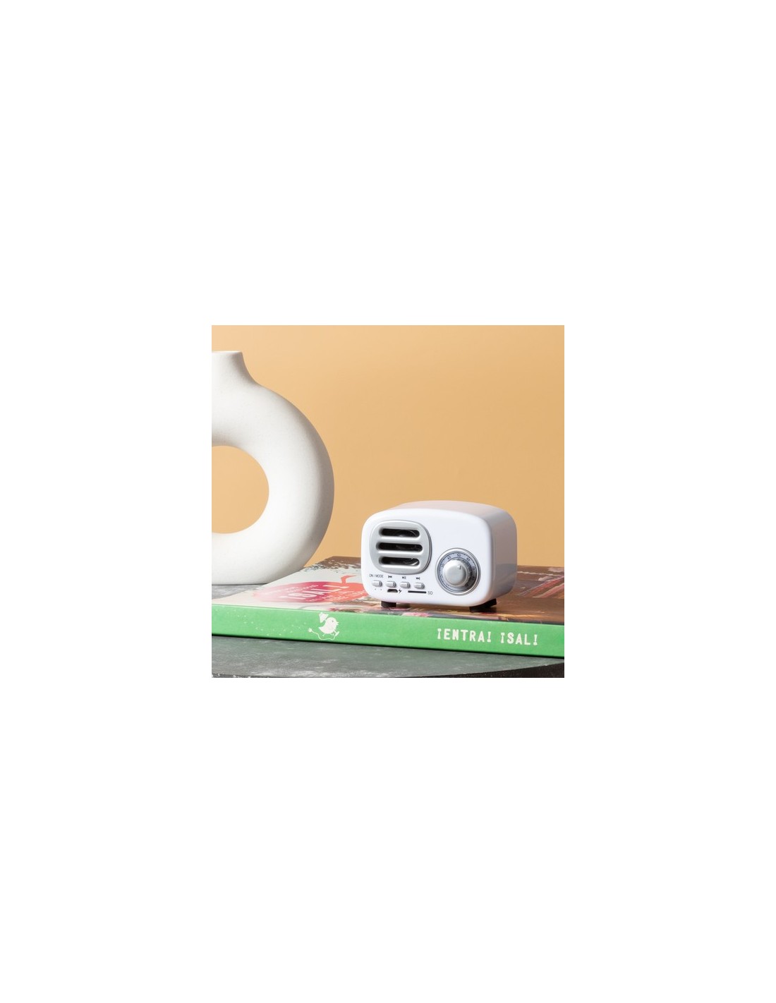 Compacto altavoz con estilo vintage en forma de radio de época y 3W de potencia. Con conexión Bluetooth para disfrutar de la libertad inalámbrica, reproduciendo la música y aportando estilo al mismo tiempo. Con indicadores luminosos, ranura para tarjetas Micro SD de hasta 64 GB y batería de 500 mAh. Presentado en atractiva caja de diseño kraft, con manual de instrucciones en español e inglés. Conexión Bluetooth. Potencia Sonido 3W. Batería 500 mAh