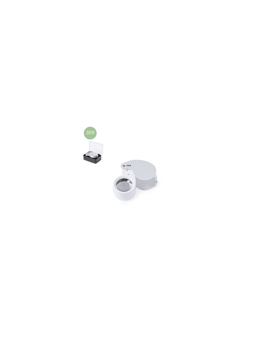 Lupa plegable doble con aumento 30x , fabricada en resistente metal. Con luces LED integradas y gran potencia de aumento para obtener una visión muy cercana de los detalles más pequeños y ampliación sin distorsión. Ideal para inspeccionar objetos de tamaño reducido, textos, etc. Además, tiene un accesorio para colgar, y viene dentro de un estuche con interior acolchado para una mayor protección. Alimentación a pilas (de botón incluidas), con llave especial para reemplazarlas cuando se agoten. Presentada en caja de cartón negra. 2 Ledes. Pilas Botón Incluidas Composition : Metal.