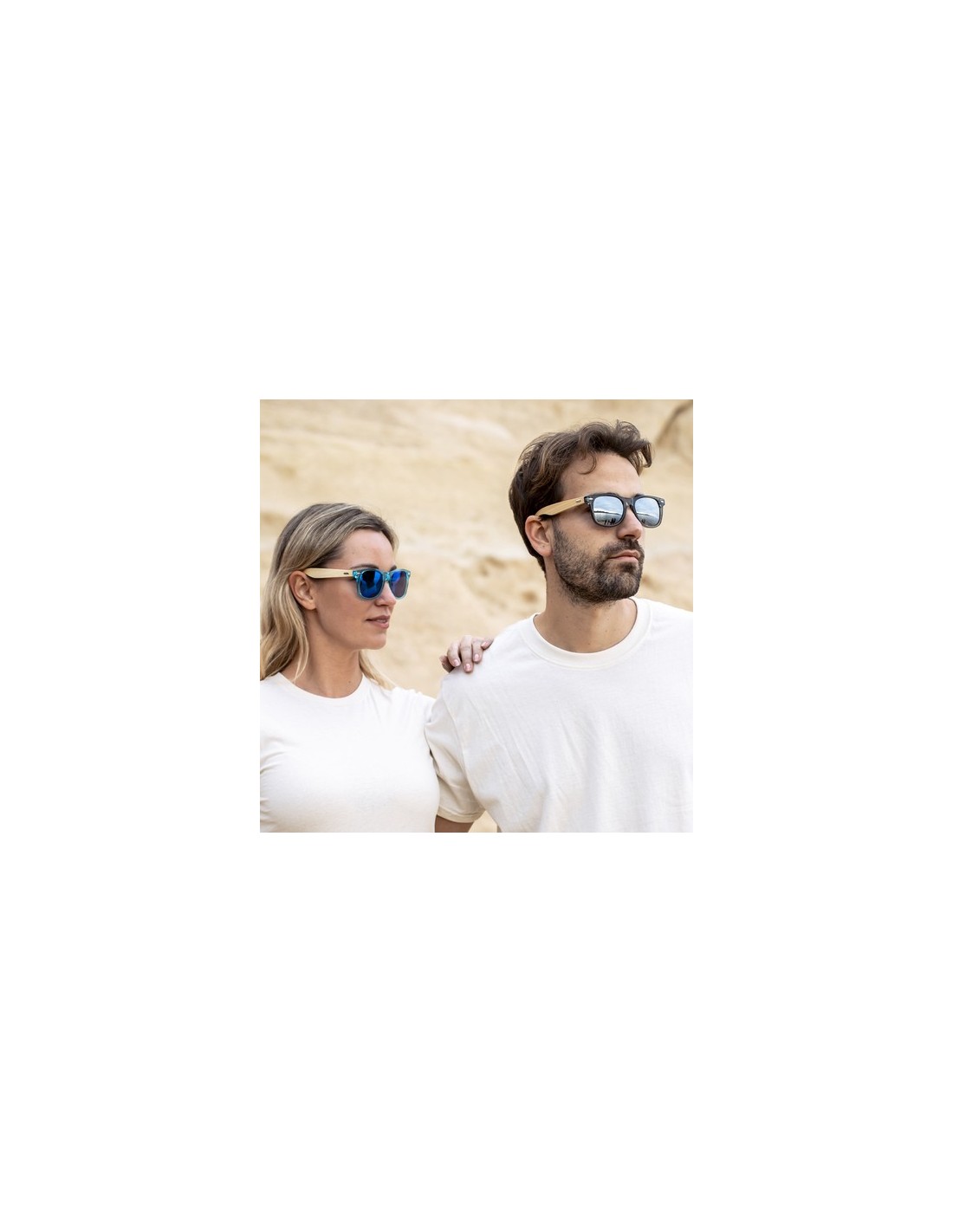 Gafas de sol fabricadas en bambú con protección UV400. Montura de colores a juego con los cristales en resistente material PC y patillas en bambú. Lentes AC (acetato de celulosa) acabado espejo de color, disponibles en variada gama de colores en combinación con la montura. Presentada en bolsa individual diseño eco.Materiales como el bambú fomentan la utilización de materias primas naturales, reduciendo las emisiones contaminantes. Proviene de una planta de gran resistencia y versatilidad, con crecimiento y regeneración rápidos, siendo una excelente alternativa al uso de madera tradicional. Lentes Efecto Espejo. Protección UV400 Composition : Bambú/ AC.
