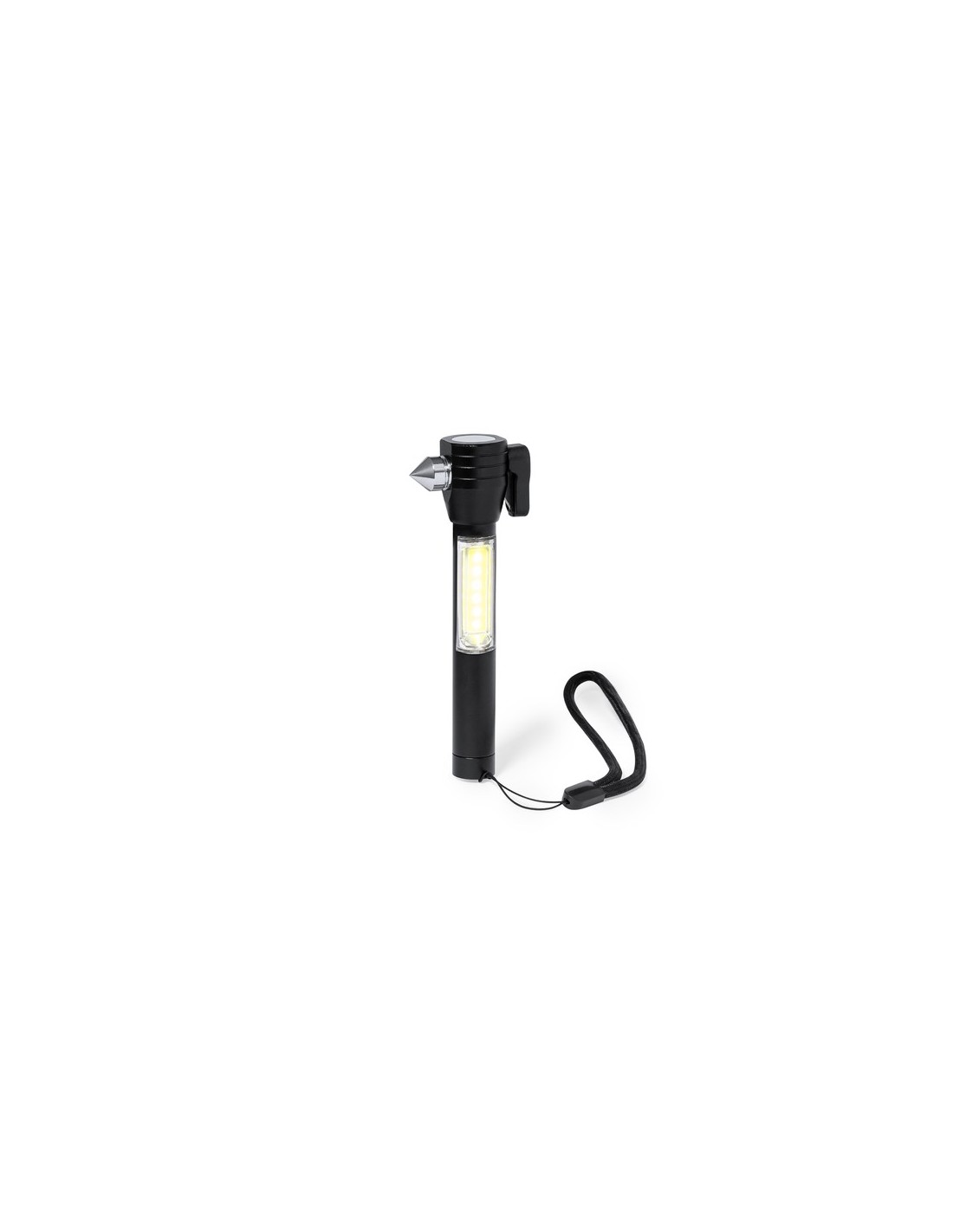 Versátil martillo de emergencia. Cuenta con tres funciones: una potente linterna con 6 luces COB alimentadas por pilas de botón (incluidas), una punta metálica rompecristales y una cuchilla cortacinturones. Zona imantada en parte superior y tira para una mejor sujeción. Presentado en caja individual kraft. 6 Luces COB. Magnético. 3 Funciones. Pilas Botón Incluidas Composition : Aluminio.