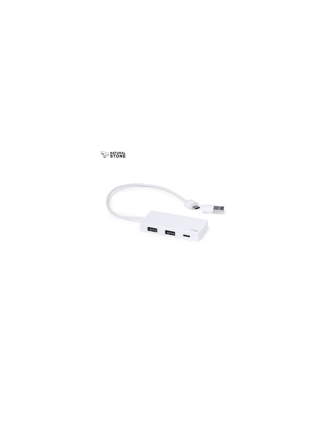 Puerto USB 2.0 fabricado a partir de extractos de piedra natural en combinación con resistente ABS. Incluye puerto Tipo C y 2 puertos USB, con entrada dual USB/Tipo C. Presentado en caja individual de diseño kraft.Fabricado con extractos de piedra natural, ayudando a la reducción del uso de plásticos, además de proporcionar un acabado suave y resistente. 1 Puerto Tipo C. 2 Puertos USB 2.0 Composition : Extractos de Piedra Natural/ ABS.