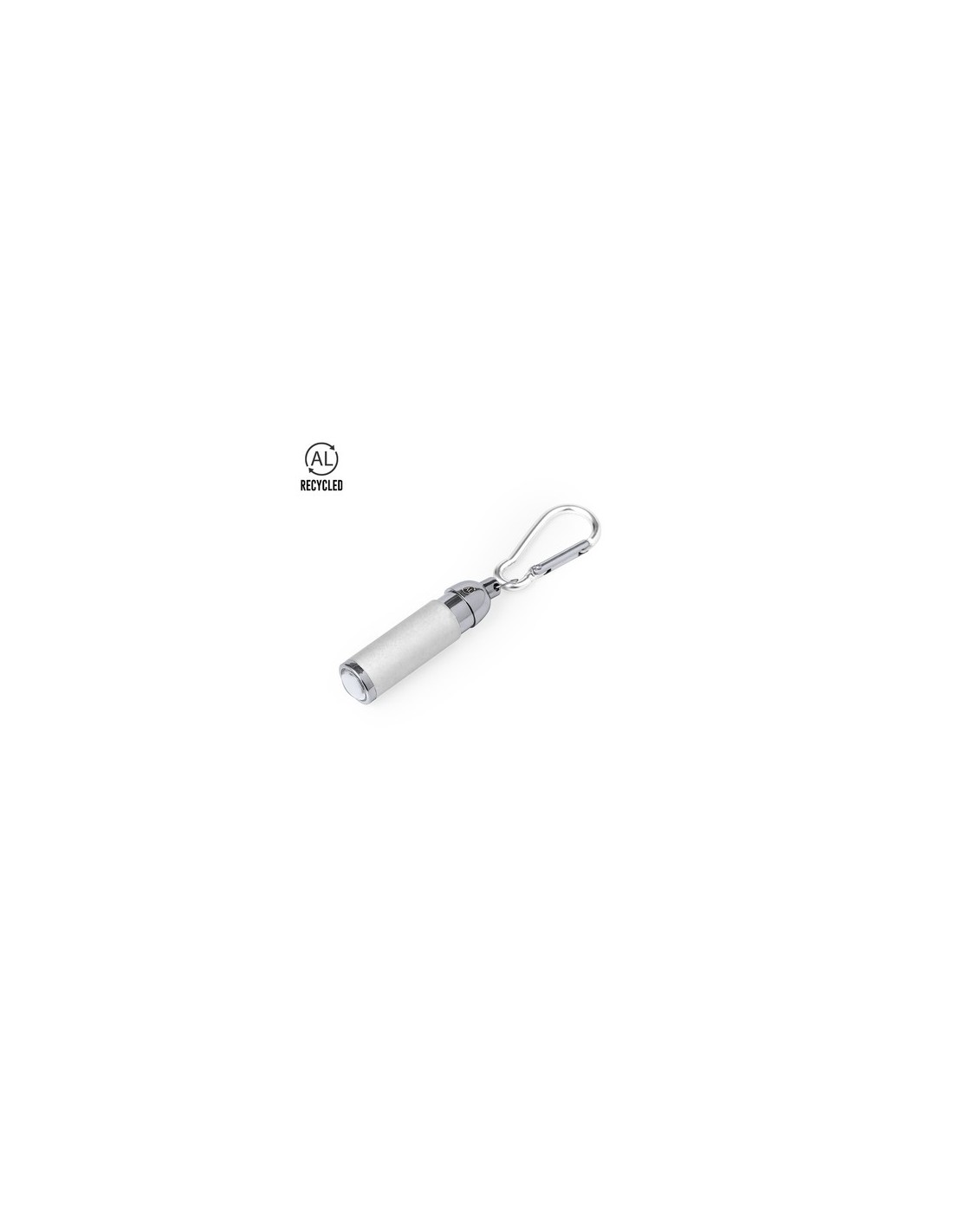 Llavero linterna con cuerpo fabricado en Aluminio Reciclado. Equipado con 1 LED de potencia, funciona con pilas de botón incluidas y cuenta con un enganche en forma de mosquetón del mismo color. Incluye logotipo Aluminio Reciclado en un lateral y está disponible en una variada gama de colores. Presentado en caja de diseño kraft.El Aluminio Reciclado es un material con posibilidades de reciclaje casi infinitas, sin perder sus propiedades originales y consumiendo menos energía en este proceso.Certificación GRS (Global Recycled Standard / Estándar de Reciclaje Global), que garantiza el origen reciclado del material usado para fabricar el producto. 1 Led. Pilas Botón Incluidas Composition : Aluminio Reciclado.