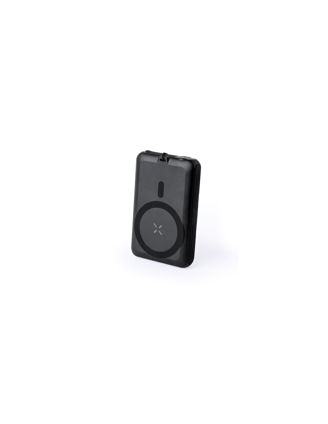 Batería auxiliar externa de recarga solar y de gran capacidad de carga -5.000 mAh-. Con cargador inalámbrico integrado 5W y fijación magnética Magsafe, permitiendo usar el dispositivo mientras se está cargando y compatible con dispositivos equipados con tecnología de carga inalámbrica Qi. Además, cuenta con una luz LED con dos posiciones de luz, fija e intermitente. Fabricada en resistente ABS de color negro, con conector de entrada/salida Tipo C + 1 salida USB + 1 entrada Micro USB. Presentada en atractiva caja individual de diseño.Las capacidades mostradas en todas nuestras baterías auxiliares externas son reales, incorporando todas ellas baterías de grado A y no recicladas, con una vida útil de al menos 500 ciclos de carga y según normativa CE. Además, están fabricadas conforme a los estándares RoHS y en cumplimiento con los siguientes requisitos de seguridad:Sistema de protección contra sobrecarga del power bank.Sistema de protección contra descarga completa que proporciona una mayor durabilidad del power bank.Sistema de bloqueo para evitar cortocircuitos.Sistema de transferencia de carga constante, acorde con la capacidad del dispositivo de destino. 1 Led. 2 Posiciones de Luz, Fija e Intermitente. Inalámbrico 5W. Magnético. 5000 mAh. Carga Solar. Salida USB y Tipo C. Entrada Micro USB y TIpo C
