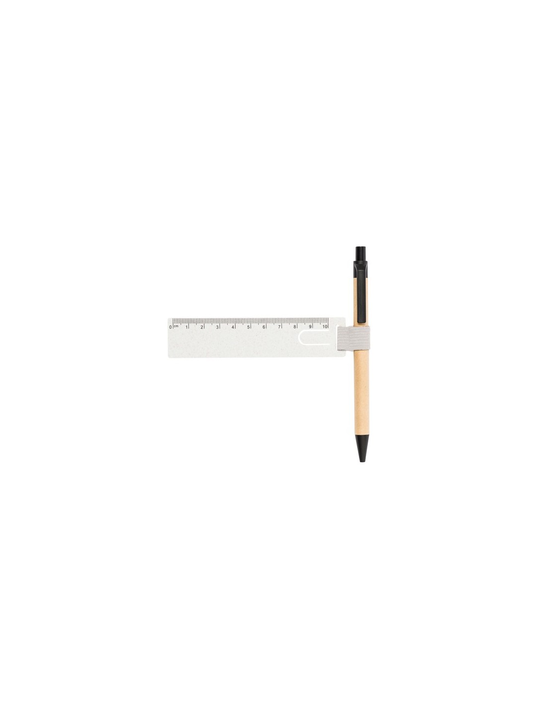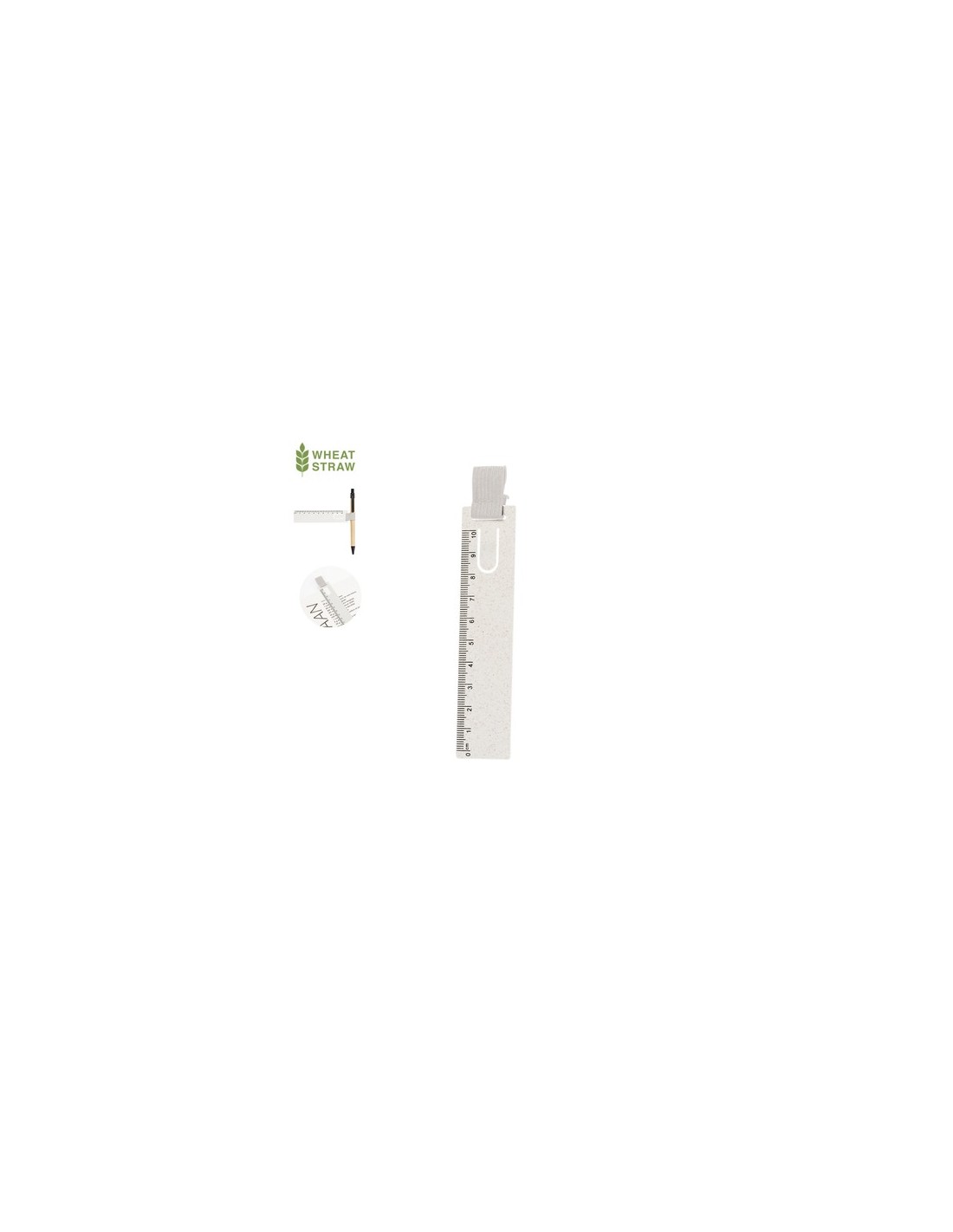 Original regla marcapáginas hecho en caña de trigo. Práctico utensilio de medida de hasta 10cm con pestaña para usar como marcapáginas y goma elástica para sujetar bolígrafos. Fabricado en caña de trigo y poliéster. Presentado individualmente en una bolsa de papel reciclada. La caña de trigo fomenta la utilización de materias primas naturales, reduciendo así las emisiones contaminantes. 10 cm Composition : Caña de Trigo/ ABS.