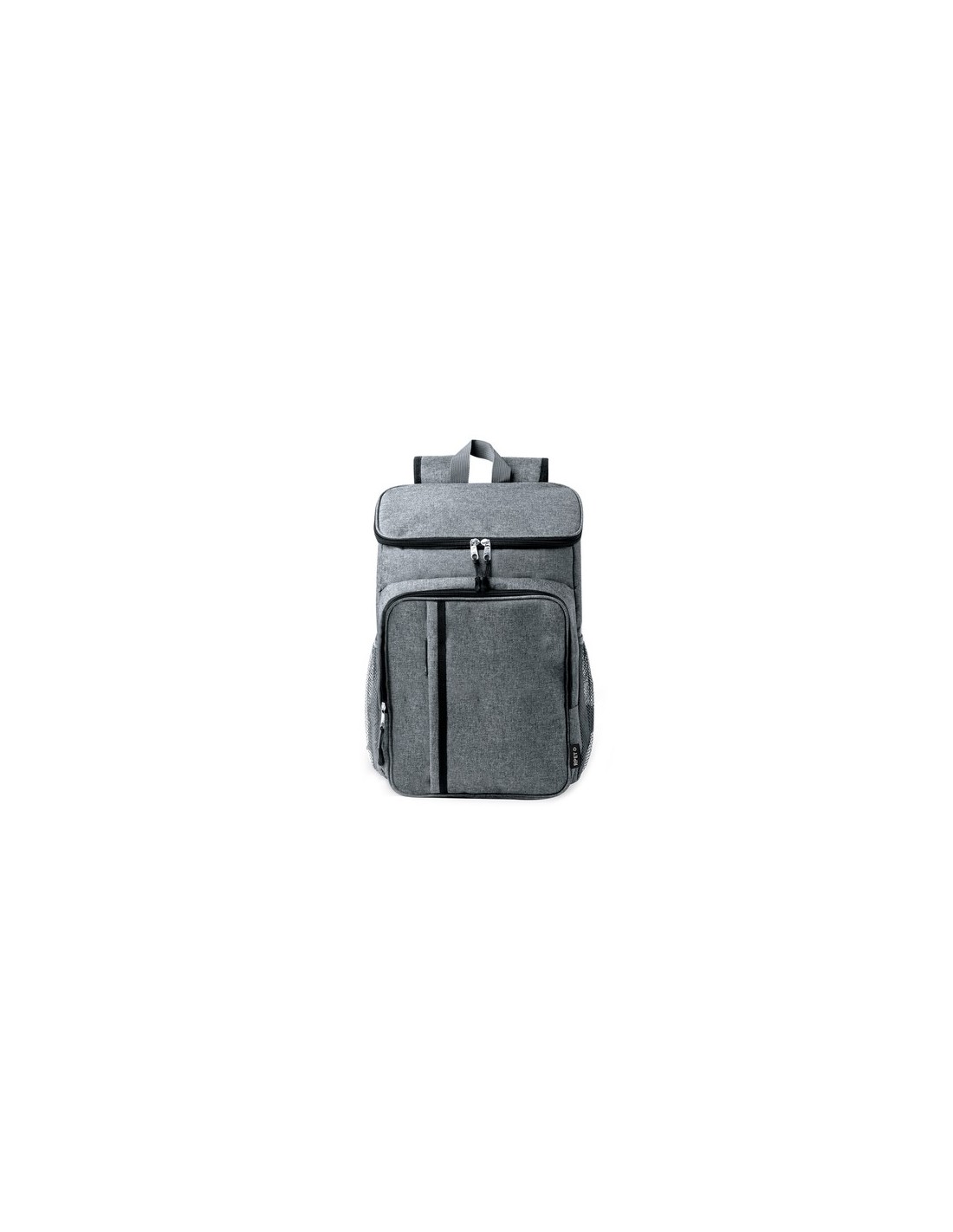 Mochila nevera para picnic confeccionada en resistente RPET 600D de alta calidad. Diseñada para 2 personas, cuenta con un bolsillo independiente para un almacenaje seguro. Incluye 2 vasos, 2 cuchillos, 2 cucharas, 2 tenedores y 2 platos. Además, presenta un bolsillo frontal de rápido acceso y bolsillos laterales de rejilla. El compartimento nevera tiene un interior en PEVA, y la mochila cuenta con una cómoda asa de transporte, cintas y parte trasera acolchadas. Logotipo RPET en etiqueta.El material RPET se elabora a partir de plástico reciclado, para así fomentar la reutilización de residuos plásticos y ayudar a la sostenibilidad del planeta. 10 Piezas. 2 Servicios. Parte Trasera y Cintas Acolchadas Composition : Poliéster 600D RPET/ PEVA.