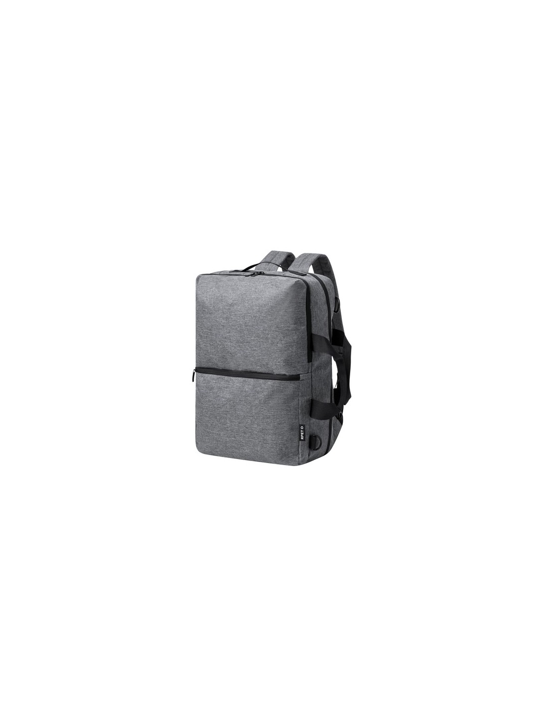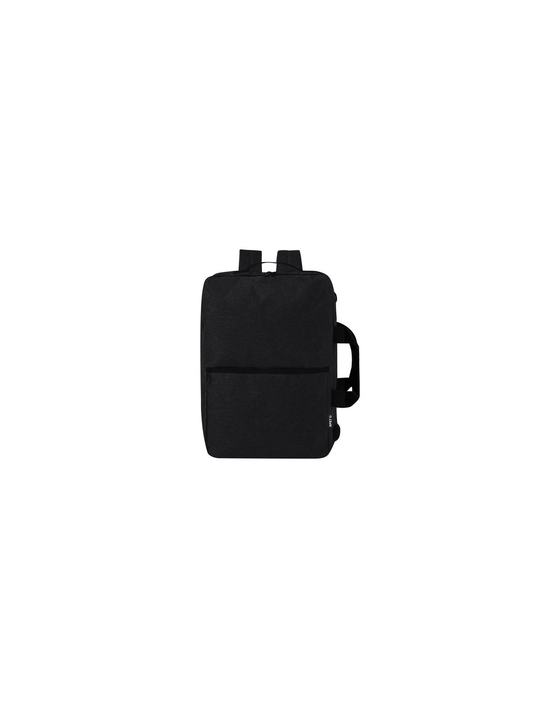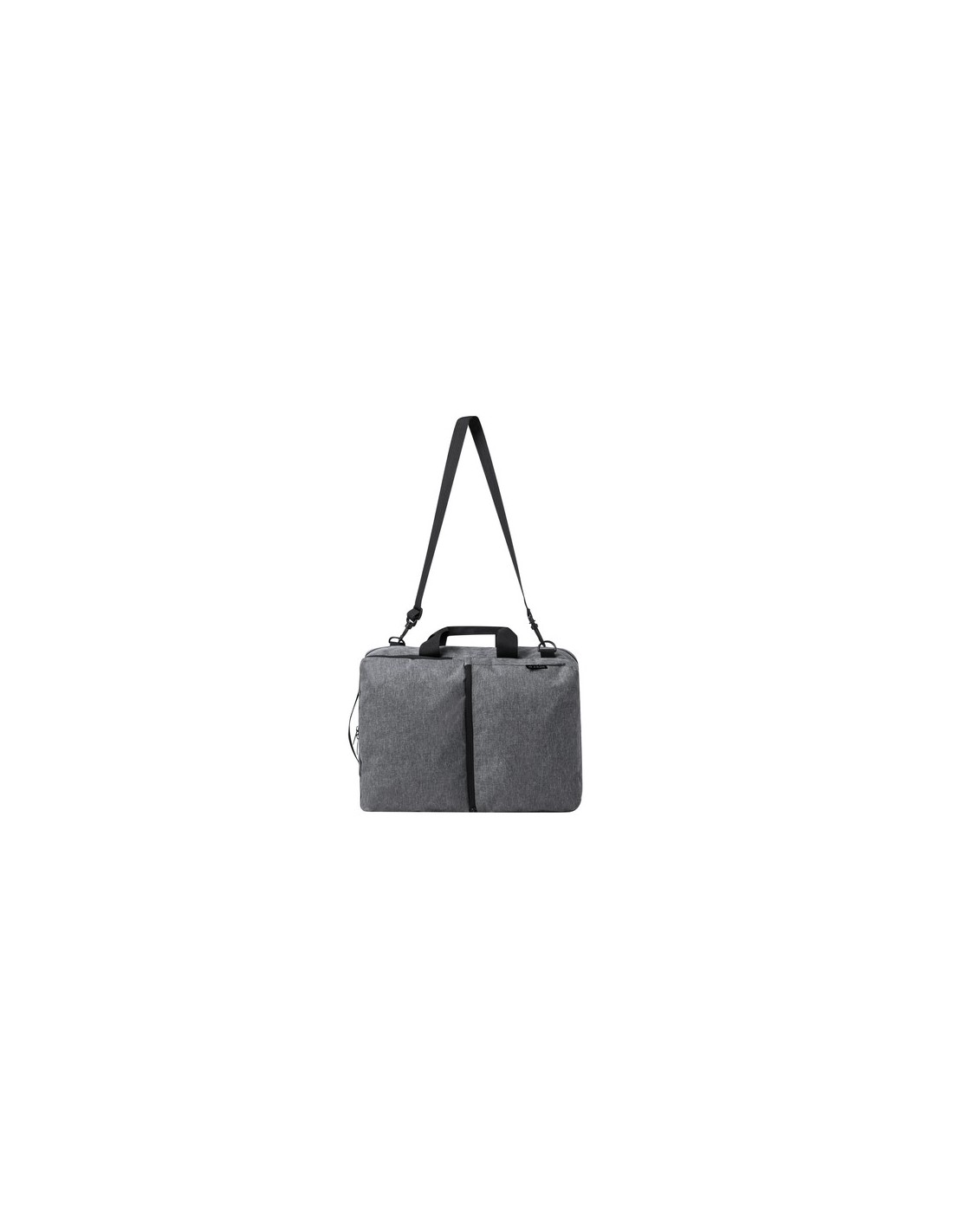 Mochila portadocumentos confeccionada en resistente 600D RPET. Presenta un diseño urbano que incorpora un bolsillo central con cierre de cremallera, y doble tirador. Con interior acolchado para portátil de hasta 15 pulgadas, bolsillo adicional con cierre de doble cremallera y bolsillo frontal. Sus cintas de hombros y la espalda están acolchadas y son ajustables para mayor comodidad. Ofrece tres modalidades de transporte: como mochila, gracias a las tiras de hombros colchadas; como portadocumentos, gracias a su asa de transporte acolgada; y como bandolera gracias a su asa larga ajustable. Está disponible en tres elegantes colores y se presenta de manera sofisticada en una bolsa individual reciclada.El material RPET se elabora a partir de plástico reciclado, para así fomentar la reutilización de residuos plásticos y ayudar a la sostenibilidad del planeta. Bolsillo Acolchado para Portátil. Parte Trasera y Cintas Acolchadas Composition : Poliéster 600D RPET.