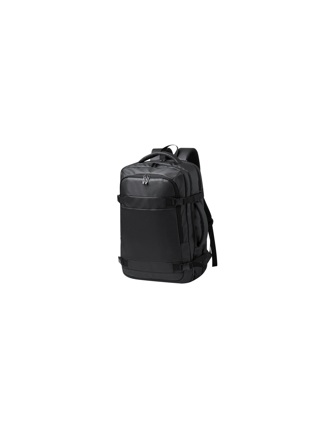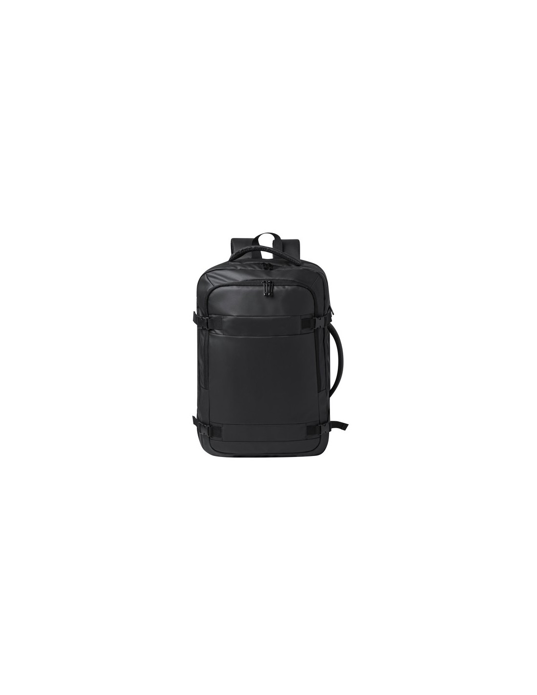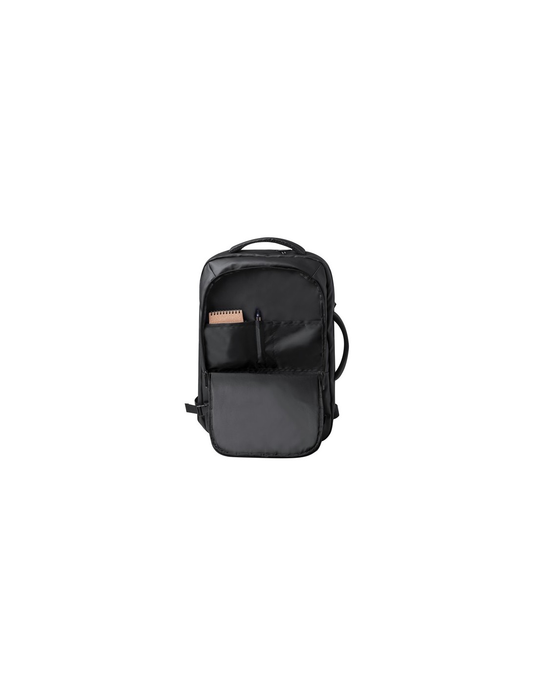 Mochila portadocumentos confeccionada en elegante polipiel. Presenta un diseño urbano que incluye un bolsillo acolchado para portátil de hasta 17 pulgadas. Reforzada con cintas laterales, cuenta con cierre de hebilla de seguridad y compartimentos con cierre de cremallera de doble tirador. Sus cintas de hombros y la espalda están acolchadas y son ajustables. Además, cuenta con un cinta para fijarla en trolley y una asa acolchada para mayor comodidad al usarla como portadocumentos. Presentado en una bolsa individual reciclada. Acolchada. Bolsillo Acolchado para Portátil Composition : Polipiel.
