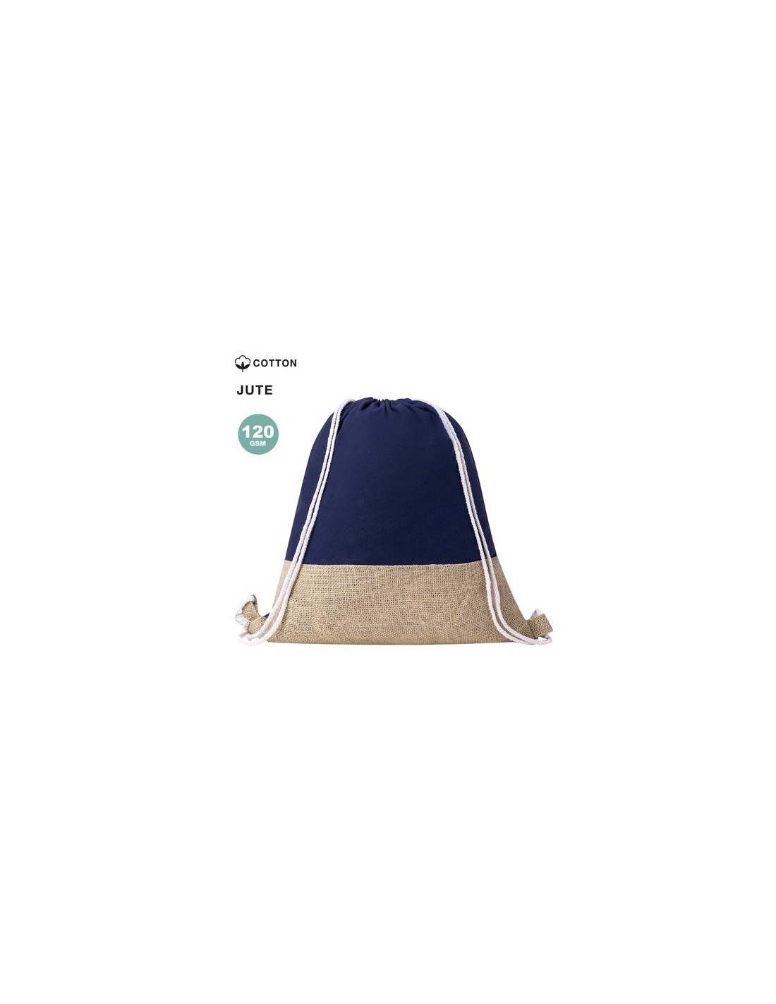 Mochila de cuerdas en material 100% algodón de 120 g/m2 en combinación con yute. Cuerdas autocierre en algodón en blanco con argollas de yute en la base. Disponible en diversos colores. Resistencia hasta 8kg de peso. Composition : Yute/ Algodón 120 g/ m2.