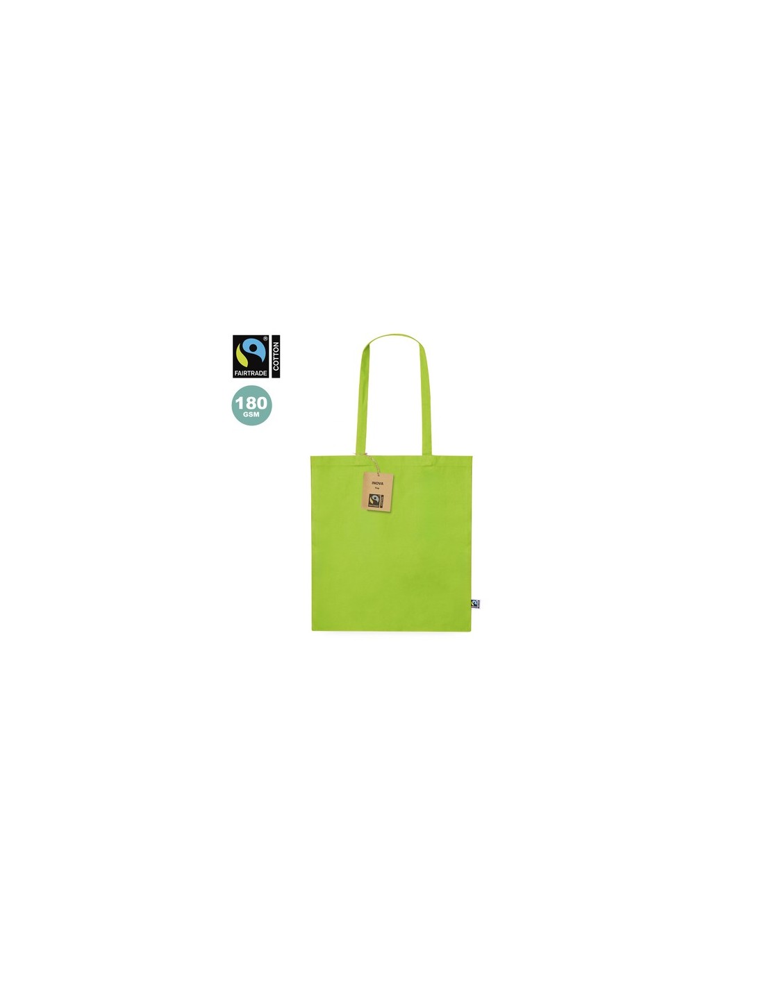 Bolsa de línea nature, fabricada en 100% algodón de 180g/m2. Con certificación Fairtrade (Comercio Justo) un sistema comercial solidario y alternativo al convencional que persigue el desarrollo de los pueblos y la lucha contra la pobreza. De acabado cosido, con asas largas de 70cm y resistencia hasta 6kg de peso. Disponible en diferentes y alegres colores. Incluida etiqueta Fairtrade y etiqueta con logotipo en cartón reciclado. Composition : 100% Algodón 180 g/ m2.