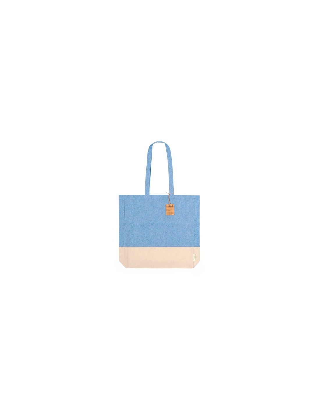 Bolsa en material 100% algodón reciclado de 120 g/m2. Asas largas de 70cm con refuerzo, de acabado cosido y fuelle. Logotipo en etiqueta lateral y resistencia hasta 8 kg de peso. Disponible en variada gama de colores nature con base de color natural. Composition : 100% Algodón Reciclado 120 g/ m2.