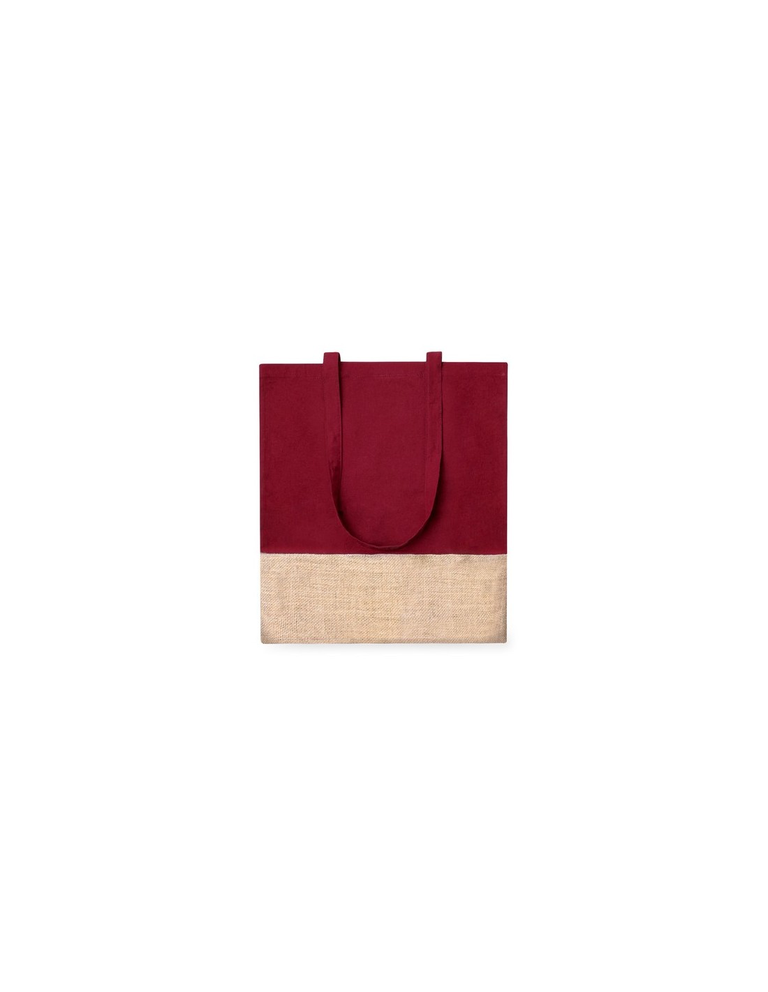 Bolsa de asas en material 100% algodón de 120 g/m2 en combinación con yute. Confortables asas planas y disponible en varios colores. Resistencia hasta 8kg de peso. Composition : 100% Algodón 120 g/ m2/ Yute.