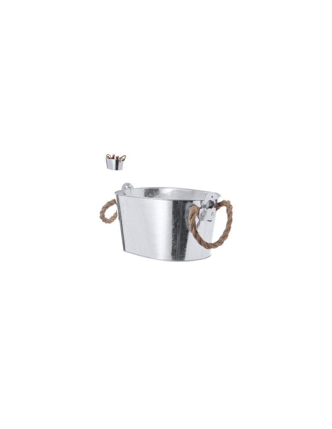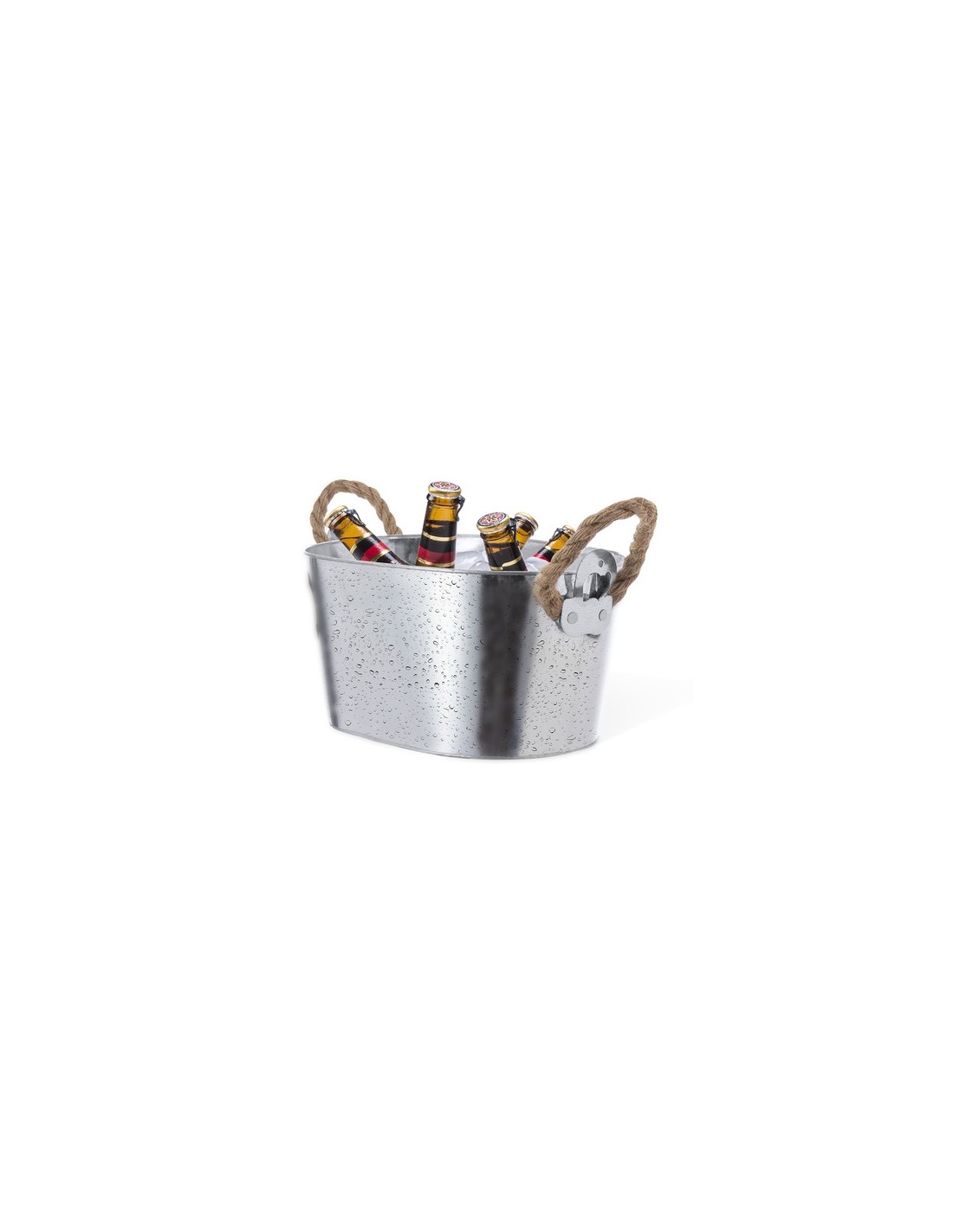 Fantástico cubo metálico de 6l de capacidad para conservar bebidas frías. Fusión perfecta entre estilo y utilidad por sus abridores fijos en los extremos y una gran capacidad. De diseño robusto, con asas de cuerda para fácil transporte. 6 L. Abridor Incluido Composition : Metal.