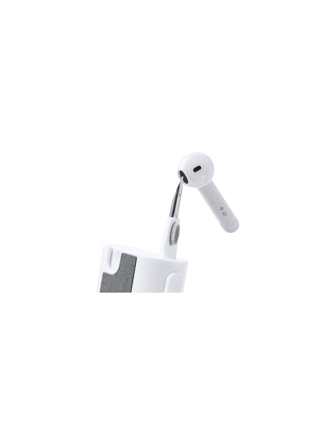Completo set de limpieza de 6 funciones, especialmente diseñado para el cuidado y mantenimiento de los gadgets tecnológicos. Todos los accesorios se alojan en el interior de la carcasa y se están listos para usar deslizando el botón correspondiente a cada uno de ellos. Incluye depósito interior rellenable con pulverizador, zona limpia pantallas, punta metálica, bastón limpiador, cepillos de diferentes formas y accesorio para extraer teclas. Fabricado en resistente ABS, con elegante diseño en color blanco y presentado individualmente en caja de diseño kraft. 6 Funciones. Líquido No Incluido