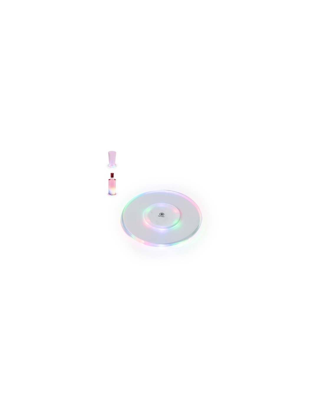 Original posavasos con 6 LEDs para iluminar las bebidas. Con botón en la base y 3 posiciones de iluminación (luz fija y luz intermitente rápida o lenta) . Se fija a la base de cualquier bebida con cinta autoadhesiva y está alimentado por dos pilas de botón (incluidas). Luces Led Multicolor. 3 Posiciones de Luz, Fija e Intermitente. Pilas Botón Incluidas Composition : Acrílico.