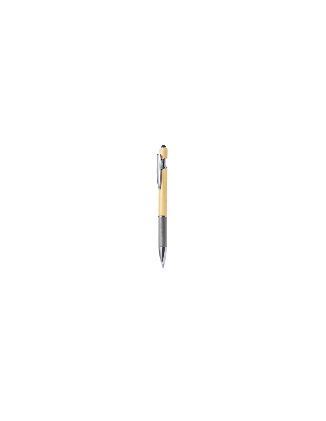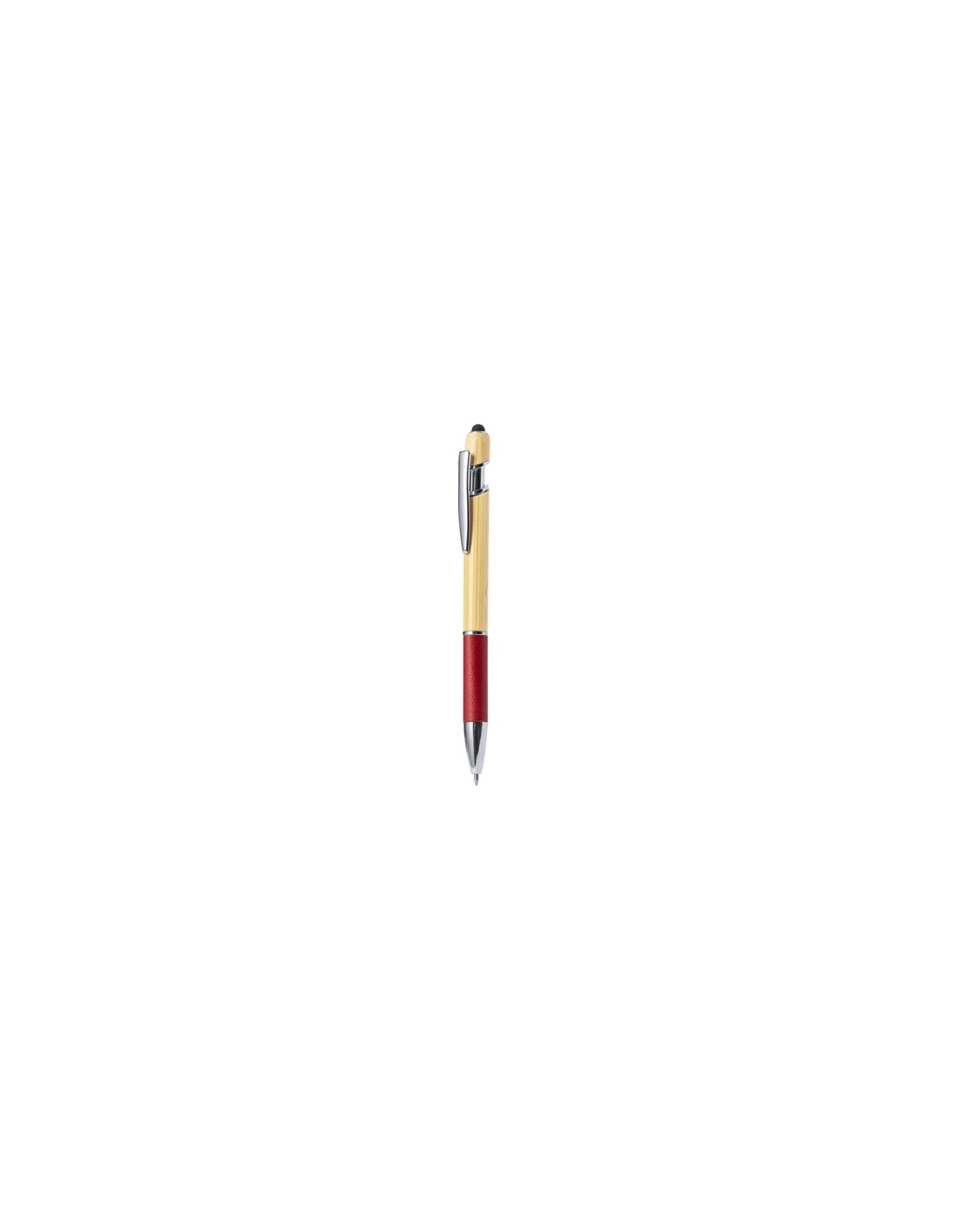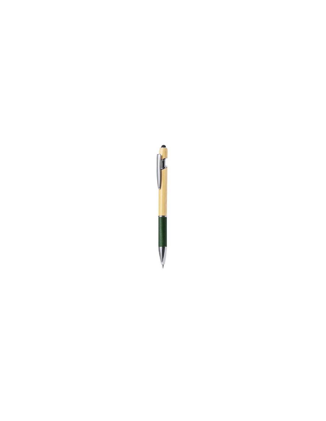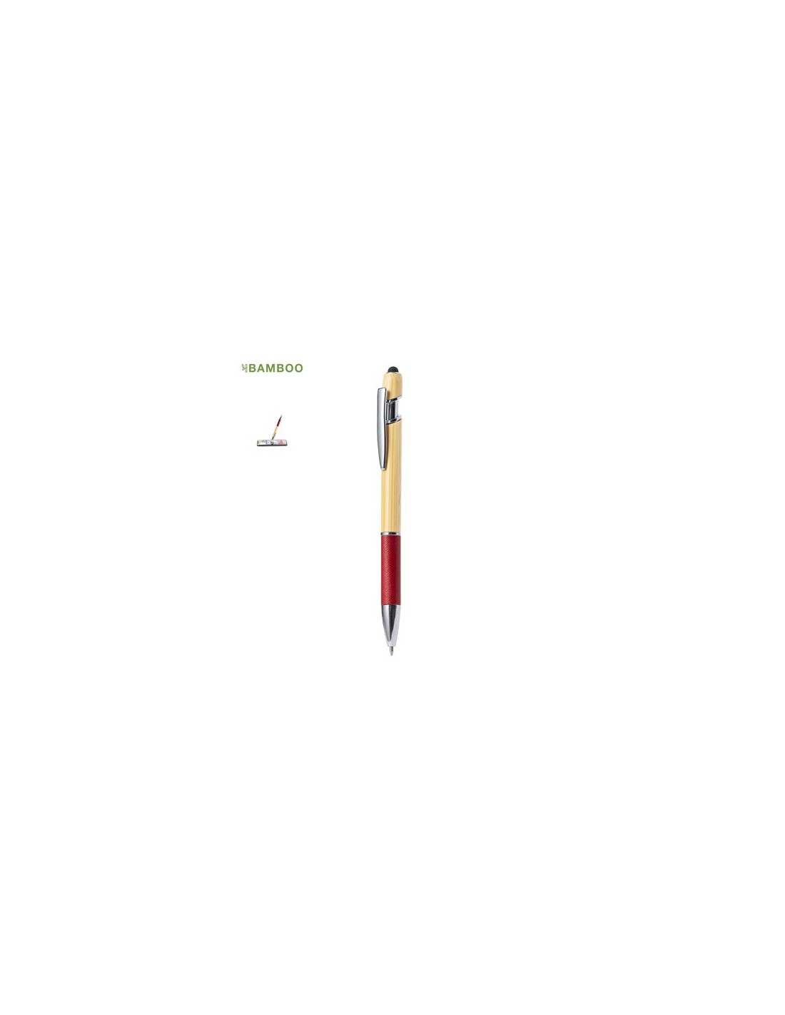 Bolígrafo puntero con cuerpo en bambú y papel reciclado. Caña fabricada en suave bambú con empuñadura hecha en cartón reciclado con textura y en variados colores. En la parte superior tiene un puntero negro. Clip metálico y accesorios en cromado. De mecanismo pulsador y en tinta azul.Elaborado con elementos vegetales para así fomentar la utilización de materias primas naturales y reducir las emisiones contaminantes. Composition : Bambú/ Papel.