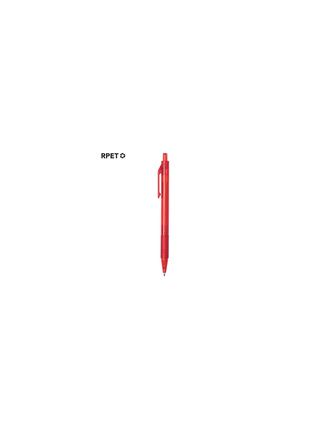 Bolígrafo de mecanismo pulsador fabricado en RPET. Cuerpo de suave acabado en variados colores transparentes y empuñadura a juego. Logotipo RPET en la parte superior del bolígrafo. En tinta azul.El material RPET se elabora a partir de plástico reciclado, para así fomentar la reutilización de residuos plásticos y ayudar a la sostenibilidad del planeta. Composition : RPET.