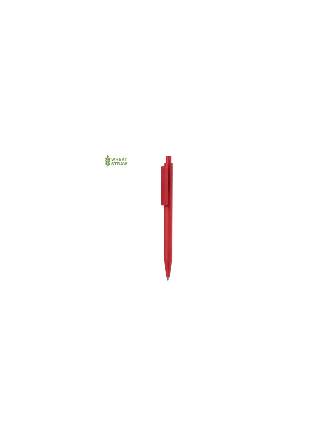 Práctico bolígrafo fabricado en caña de trigo y ABS. De mecanismo pulsador, en tinta azul y con logotipo Wheat Straw en la parte superior del bolígrafo. Disponible en variada gama de colores. La caña de trigo fomenta la utilización de materias primas naturales, reduciendo así las emisiones contaminantes. Composition : Caña de Trigo/ ABS.