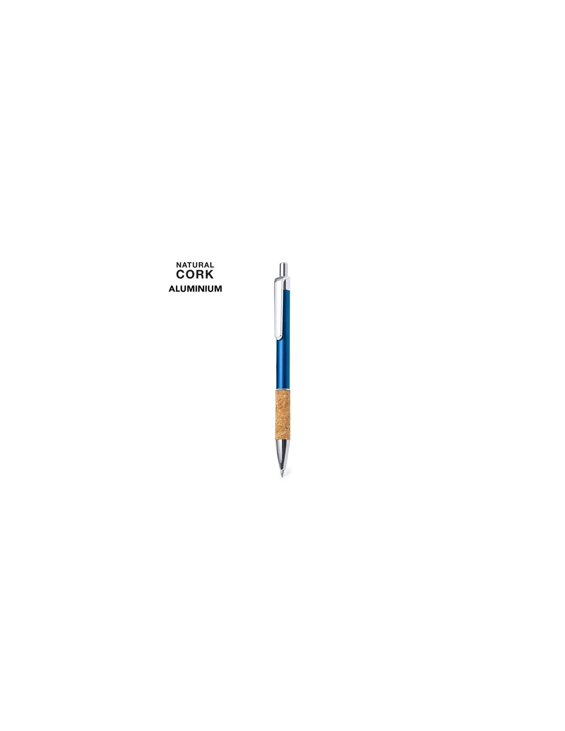 Elegante bolígrafo de corcho y aluminio con mecanismo pulsador. Cuerpo en resistente aluminio de acabado brillante y empuñadura en corcho, con la caña en una amplia gama de distintivos colores. Clip metálico, y en tinta azul. Presentado en bolsa individual reciclada.Elaborado con elementos vegetales para así fomentar la utilización de materias primas naturales y reducir las emisiones contaminantes. Composition : Aluminio/ Corcho.