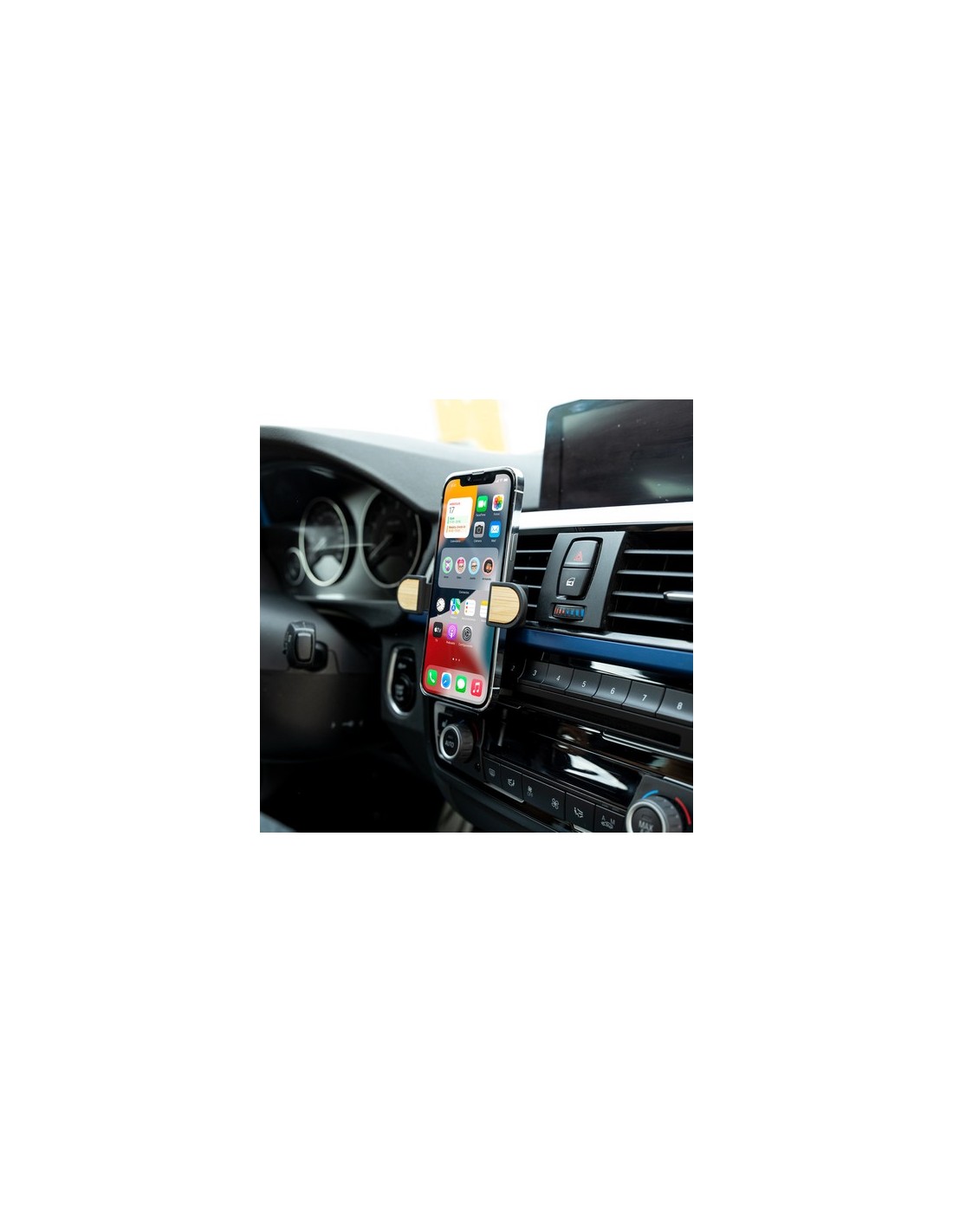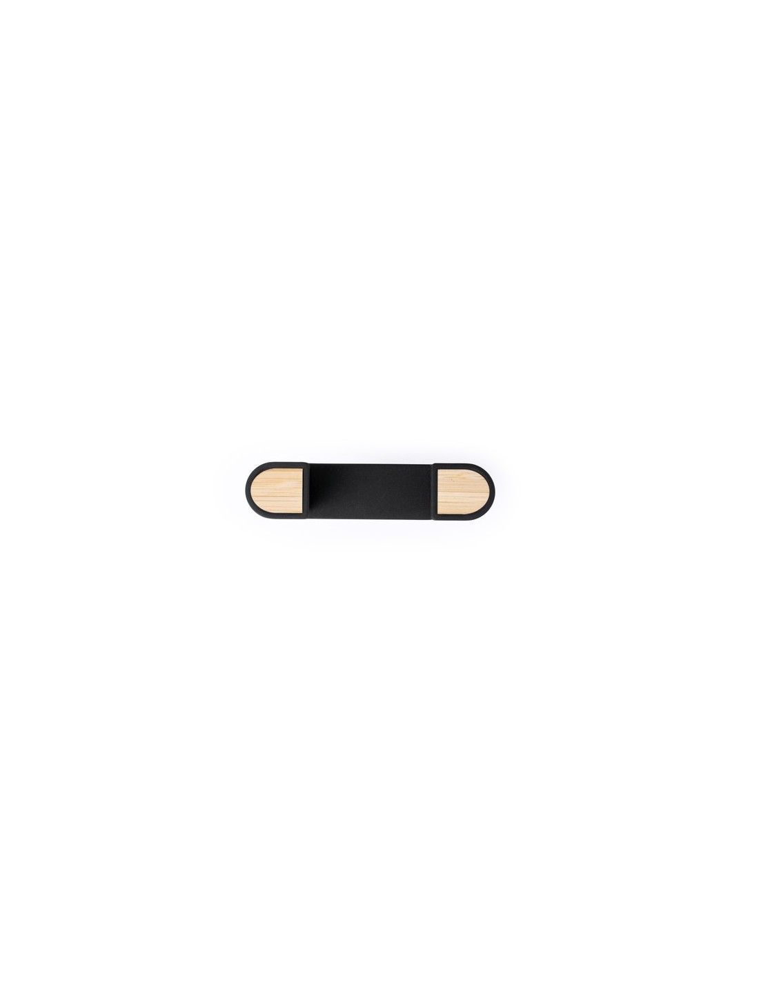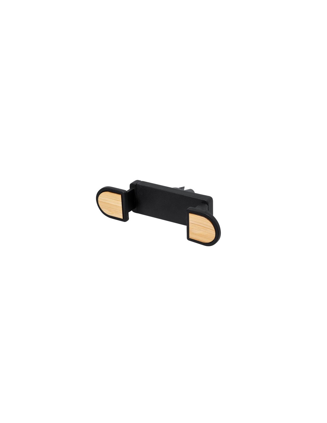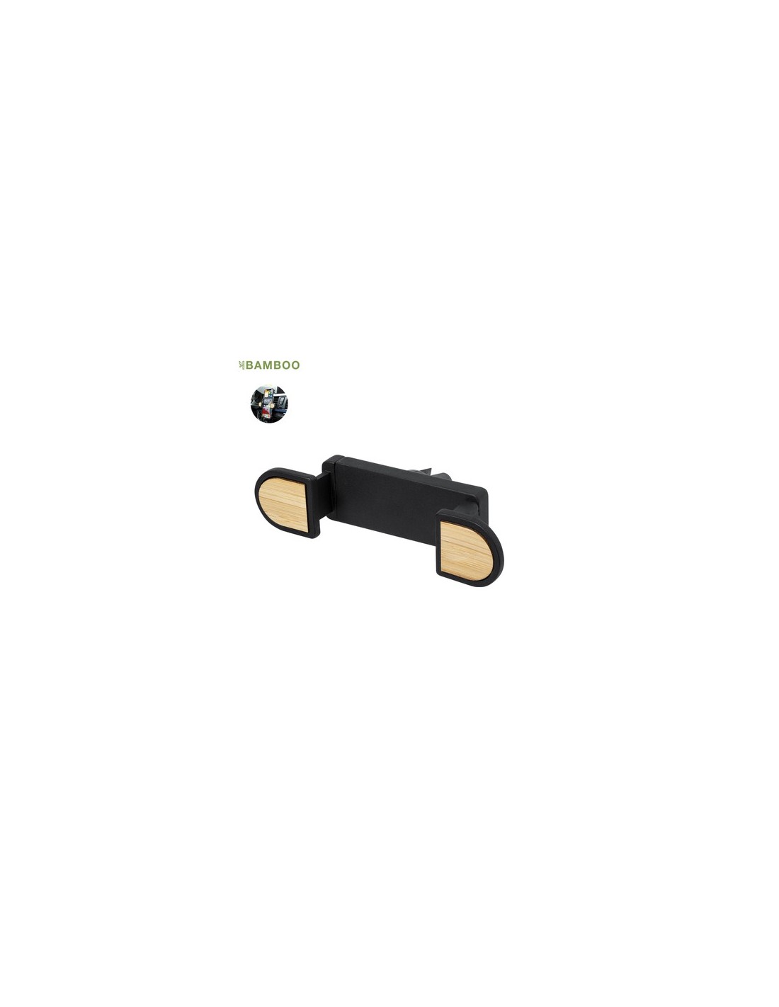 Soporte ajustable para smartphone de diseño minimalista, con base rotatoria 360º y de elegante acabado en color negro con detalles en bambú. Con sistema de fijación en rejilla de ventilación del automóvil y amplia superficie de marcaje, diseñado especialmente para tampografía. Presentado en caja de diseño kraft. Materiales como el bambú fomentan la utilización de materias primas naturales, reduciendo las emisiones contaminantes. Proviene de una planta de gran resistencia y versatilidad, con crecimiento y regeneración rápidos, siendo una excelente alternativa al uso de madera tradicional. Ajustable Composition : ABS/ Bambú.