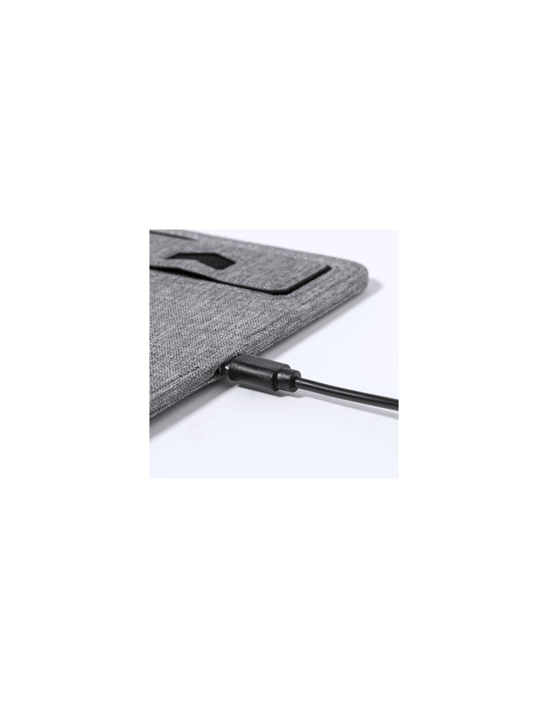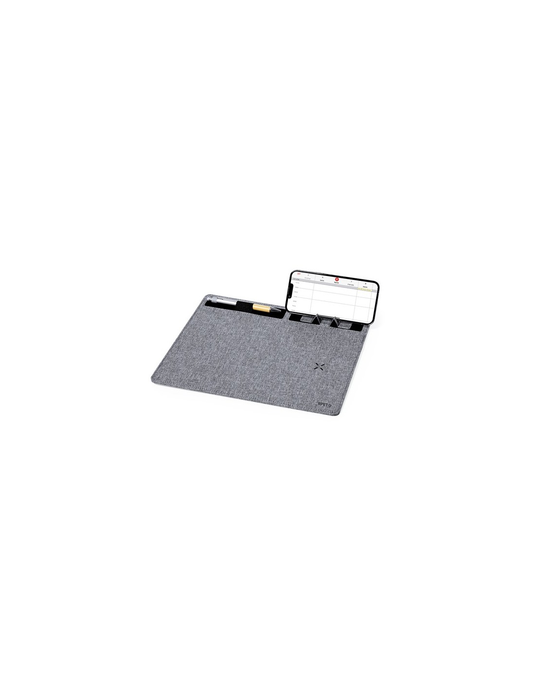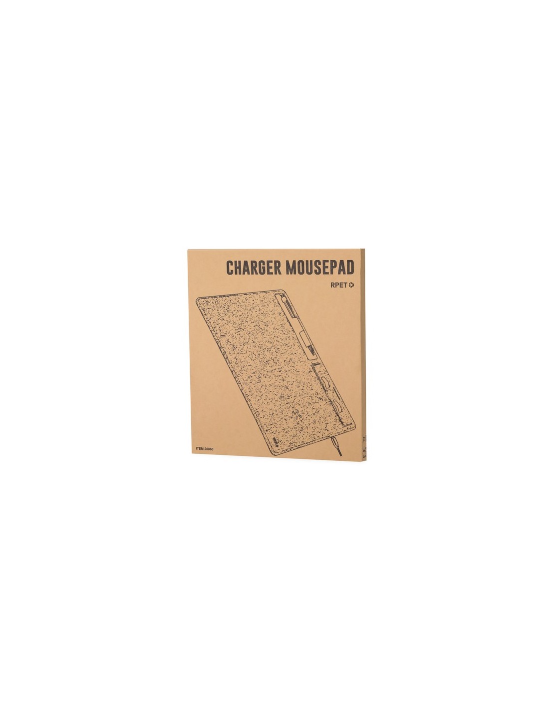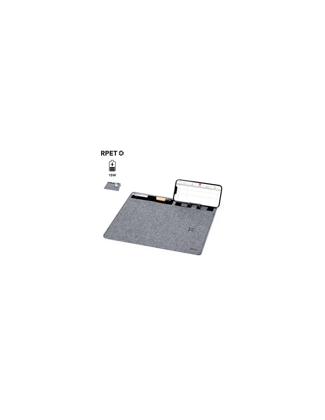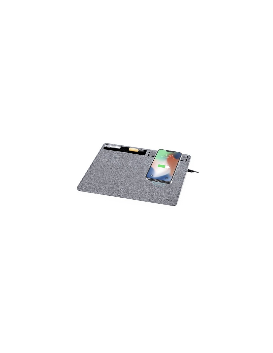 Elegante y funcional afombrilla fabricada en suave poliéster RPET. Con entrada Tipo C -cable negro Tipo C incluido- y cargador inalámbrico de 15W, compatible con dispositivos equipados con tecnología de carga inalámbrica Qi. Incluye soporte para smartphone y soporte para bolígrafos. Con base antideslizante que garantiza estabilidad y comodidad de uso. Incluye manual de instrucciones en español e inglés. Presentada en caja individual de diseño kraft y en bolsa reciclada.El material RPET se elabora a partir de plástico reciclado, para así fomentar la reutilización de residuos plásticos y ayudar a la sostenibilidad del planeta.Fabricado conforme a los estándares RoHS y en cumplimiento con los siguientes requisitos de seguridad:Sistema de protección contra sobrecalentamiento.Sistema de protección contra sobrecarga.Sistema de bloqueo para evitar cortocircuitos. Inalámbrico 15W. Antideslizante Composition : Poliéster 300D RPET.