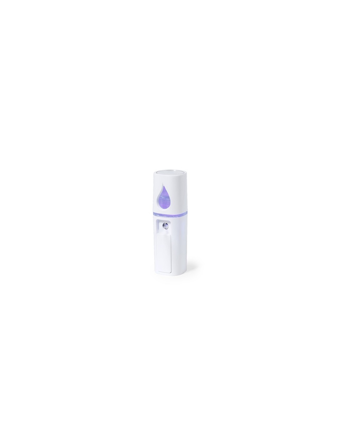 Fantástico vaporizador de bolsillo. Refrescante e hidratante pulverizador eléctrico crea una ligera bruma para rociar sobre la piel deslizando la tapadera protectora. Contenedor de 15 ml recargable con tapón de rosca, indicador de nivel y elegante luz morada. Con espejo en la tapadera. Funciona con batería de 250 mAh, cable incluido. Presentado en una caja individual. Luces Led. 15 ml. Batería 250 mAh