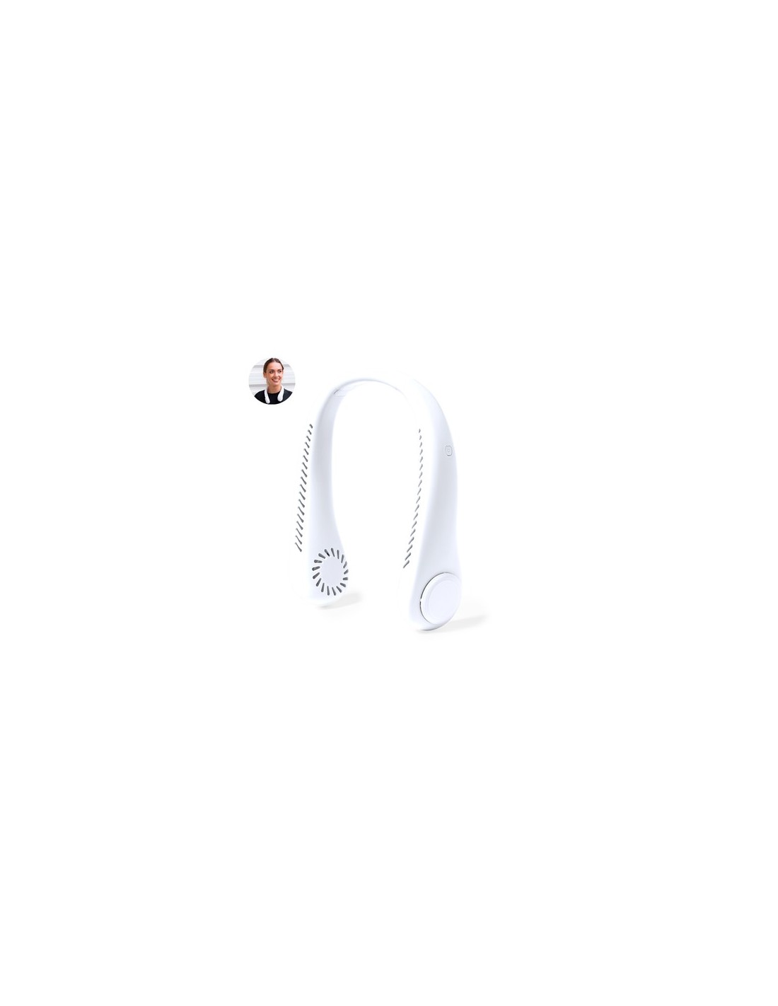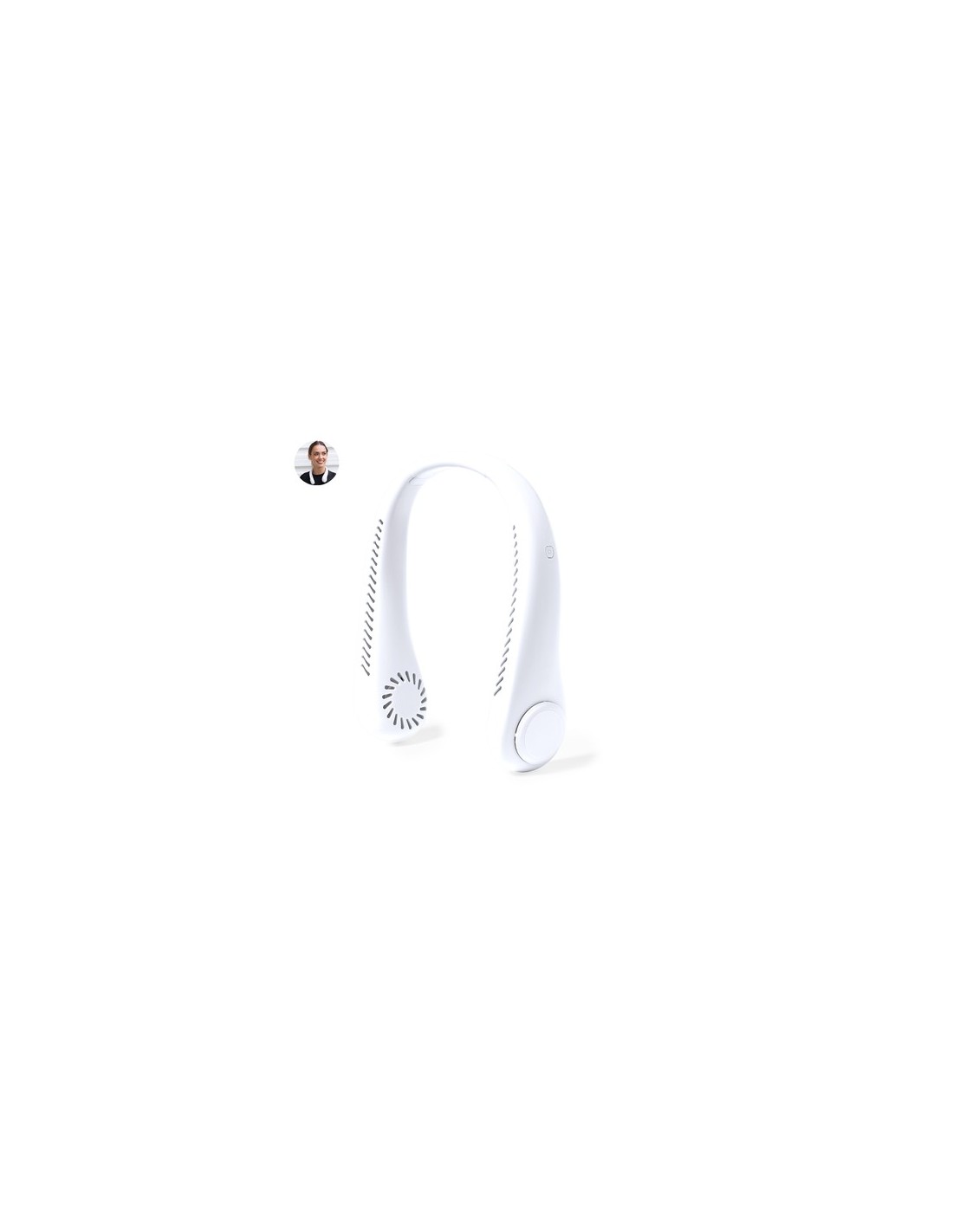 Práctico ventilador portátil fabricado en resistente ABS. Este elegante ventilador tiene un diseño en forma de collar para colocarlo alrededor del cuello, brindando una sensación refrescante. Ofrece tres posiciones de velocidad diferentes y es recargable mediante su batería de 800 mAh, cable Micro USB incluido. Presentado en caja de diseño kraft. 3 Posiciones. Batería 800 mAh