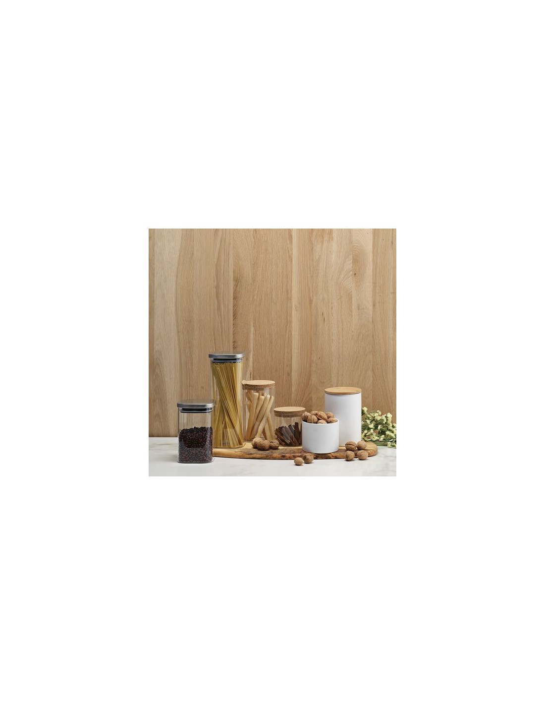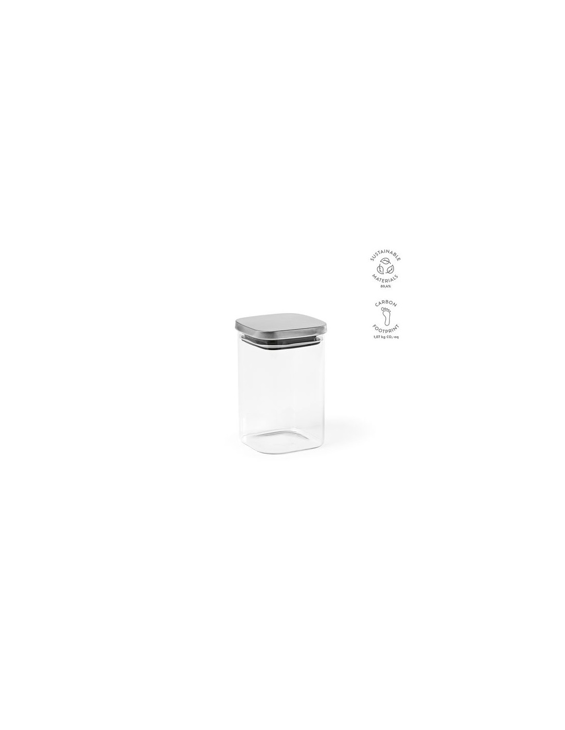 Este frasco de vidrio de borosilicato de 1270 ml (1130 ml netos) mantiene sus alimentos frescos y sabrosos. Tapa de acero inoxidable reciclado con anillo de sellado de silicona que evita la entrada de humedad. Perfecto para guardar granos de café, hojas de té, especias o cualquier otro alimento seco. Material : Vidrio de borosilicato Percentage Recycled Material : 98,5 CO2 Footprint : 1,02 Printing Technique Default : Láser.
