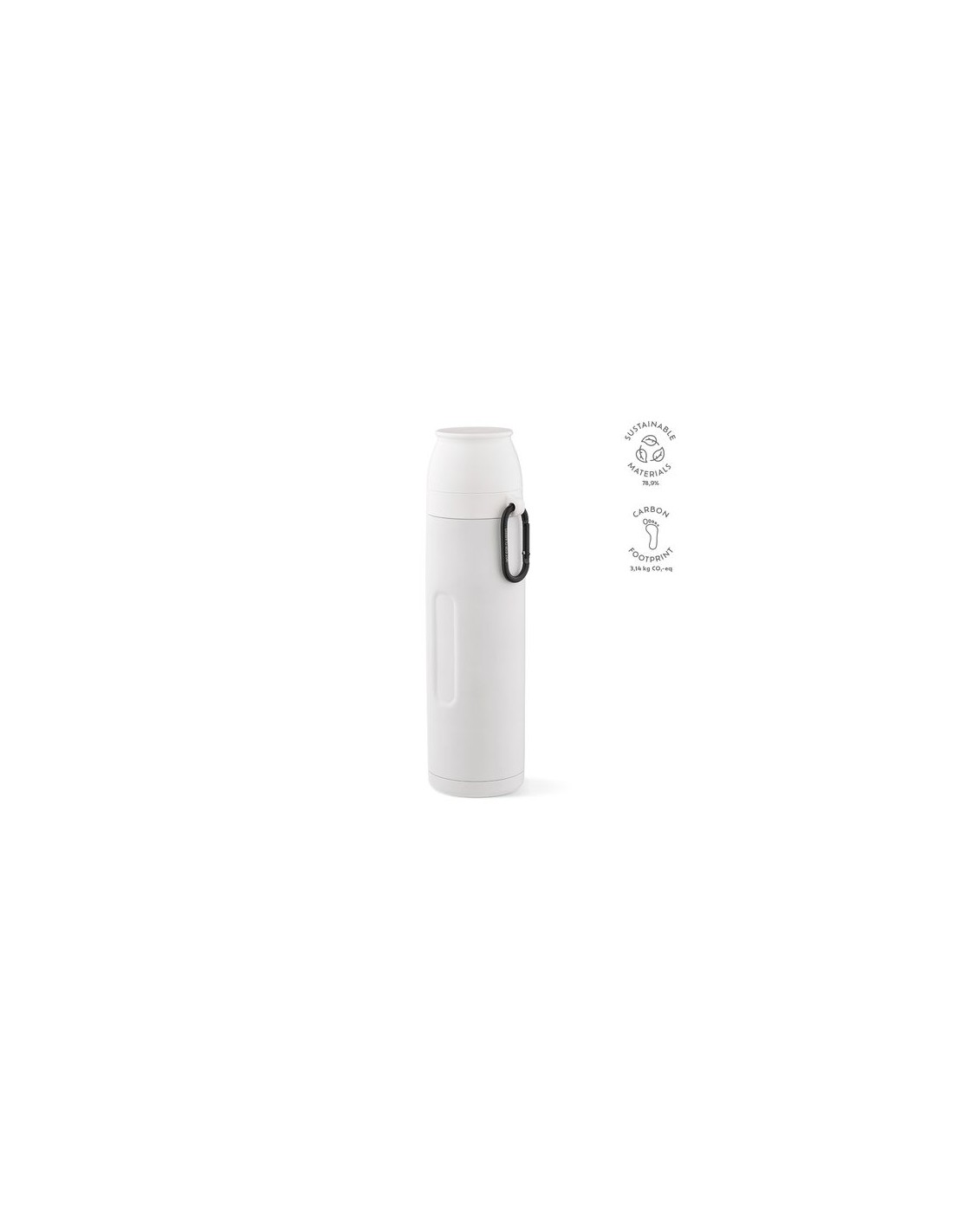 El termo de 1080ml (1000ml de líquido), fabricado en acero inoxidable reciclado, con un diseño ergonómico para sn fácil manejo con un mosquetón para el transporte. El aislamiento de doble pared lo hace perfecto para practicar senderismo, acampar o cualquier actividad al aire libre. Diga adiós a las molestias. Material : Acero inoxidable reciclado Percentage Recycled Material : 77,4 CO2 Footprint : 1,99 Printing Technique Default : Serigrafía.