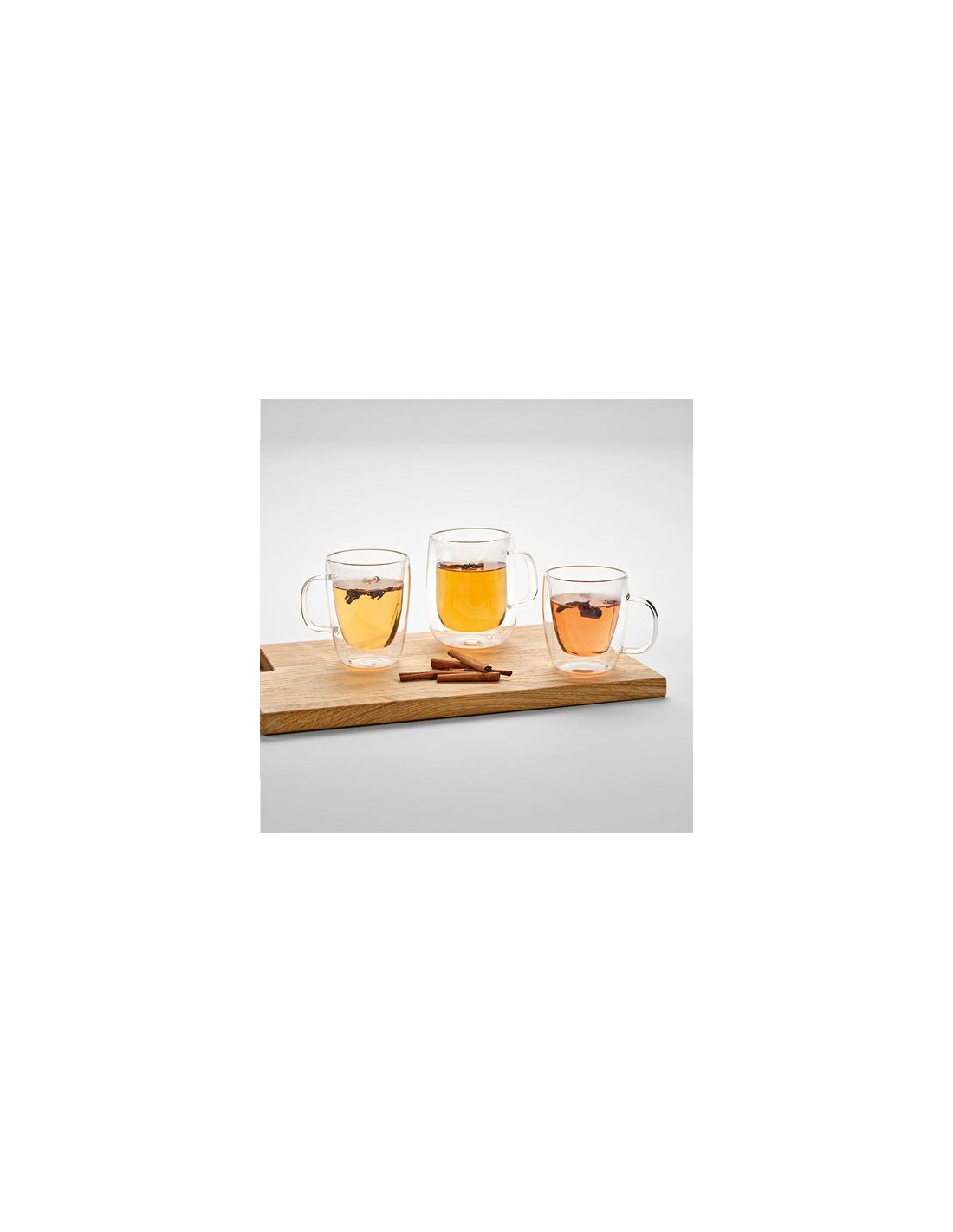 Nuestra taza de vidrio de borosilicato de 440 ml (400 ml netos), con su magia de doble pared, mantiene el café caliente y otras bebidas frías. Perfecta para usar en casa o en la oficina, llega en una encantadora caja individual, lista para convertirse en su taza favorita en cada momento. Material : Vidrio de borosilicato Percentage Recycled Material : 100 CO2 Footprint : 0,63 Printing Technique Default : Láser.