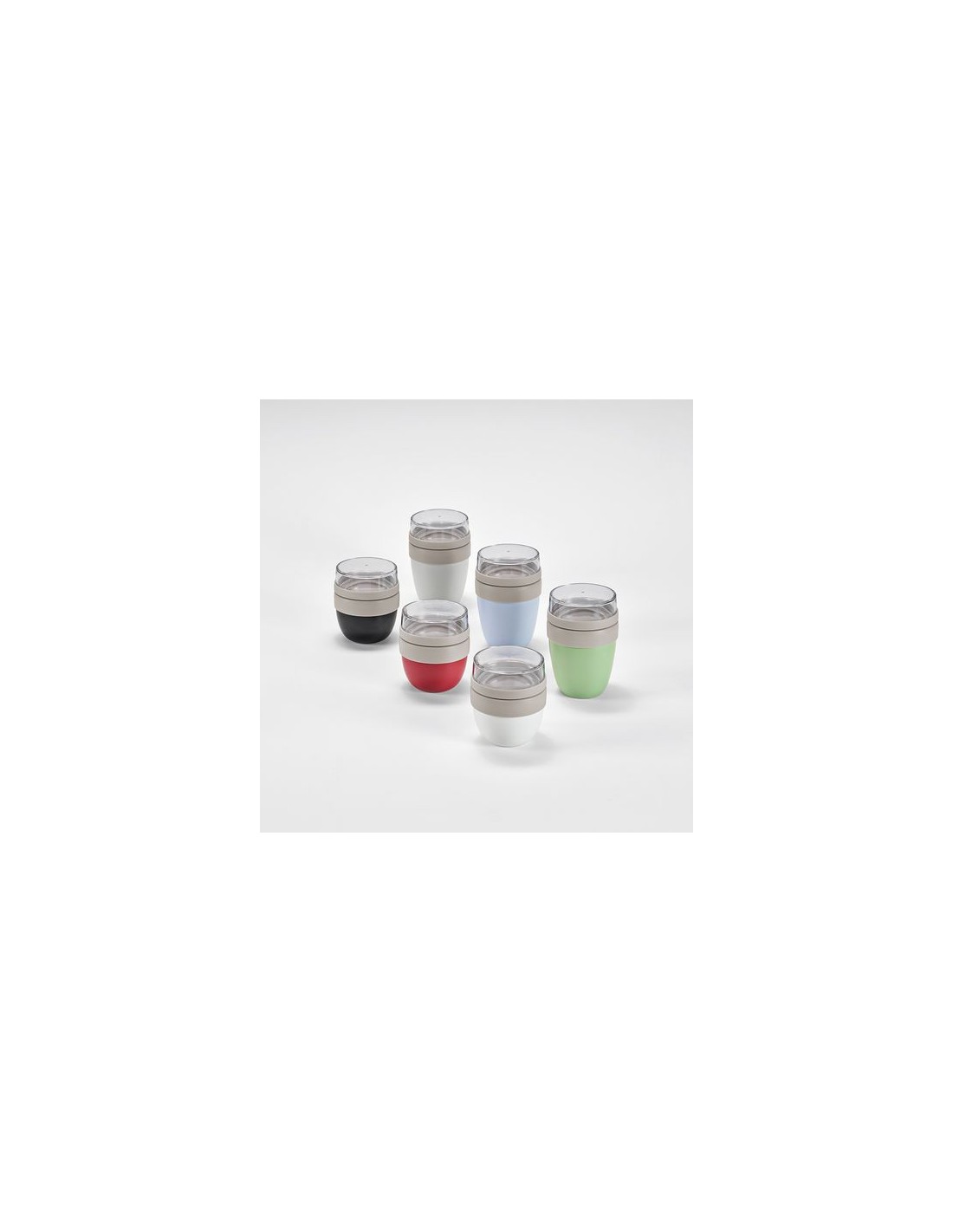 Este tarro para comida es un dúo ecológico: acero inoxidable reciclado de 350 ml (260 ml netos) y tapa de plástico transparente de 230 ml (110 ml netos). De doble pared ovalada. Sin derrames ya que es a prueba de fugas. Para yogur y cereales, una combinación perfecta. Material : Acero inoxidable reciclado Percentage Recycled Material : 65,5 CO2 Footprint : 1,18 Printing Technique Default : Serigrafía.