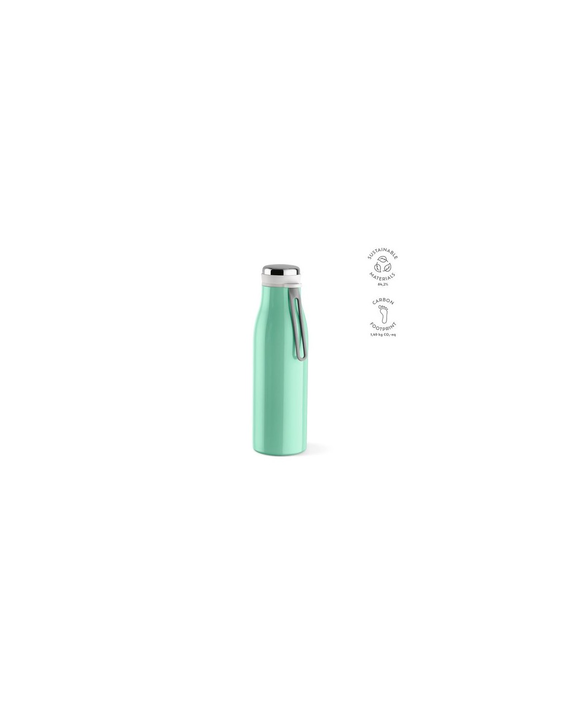 Nuestra botella de acero inoxidable de 495 ml (470 ml netos) es una pequeña maravilla con un gran impacto, fabricada con acero inoxidable reciclado a prueba de fugas. Además, la construcción de doble pared garantiza que sus bebidas se mantengan a la temperatura ideal. Material : Acero inoxidable reciclado Percentage Recycled Material : 84,1 CO2 Footprint : 1,4 Printing Technique Default : Serigrafía.
